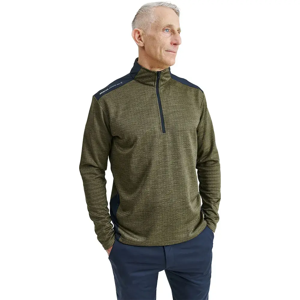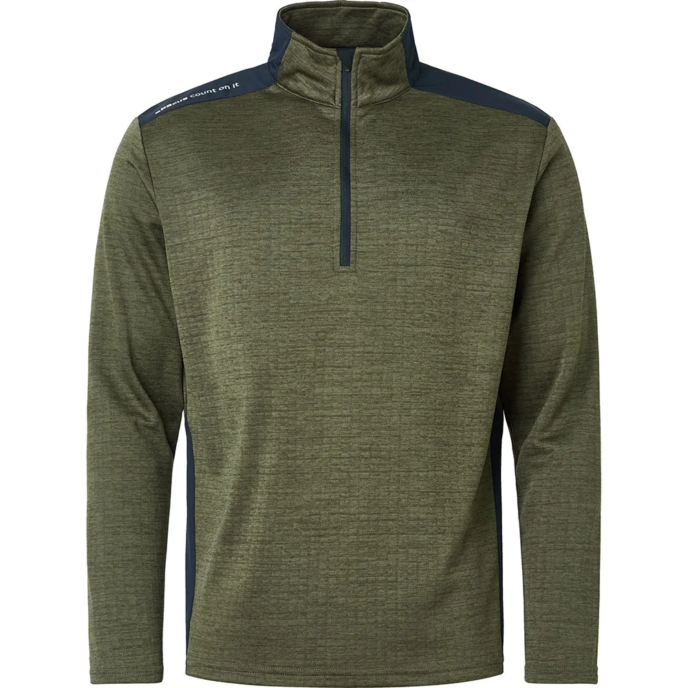 Кофта Sunningdale с застежкой на полумолнию выполнена из очень эластичного меланжевого флиса с односторонним начесом. Внутренняя сторона с клетчатым узором обеспечивает улучшенную циркуляцию воздуха, сохраняя тепло, а также обладает сухим охлаждением и влагоотводящими свойствами. Однотонная контрастная ткань на плечах и боковых вставках из мягкого одностороннего флиса с начесом создает спортивный образ. Логотип Abacus на правом плече и по центру спины под воротником.