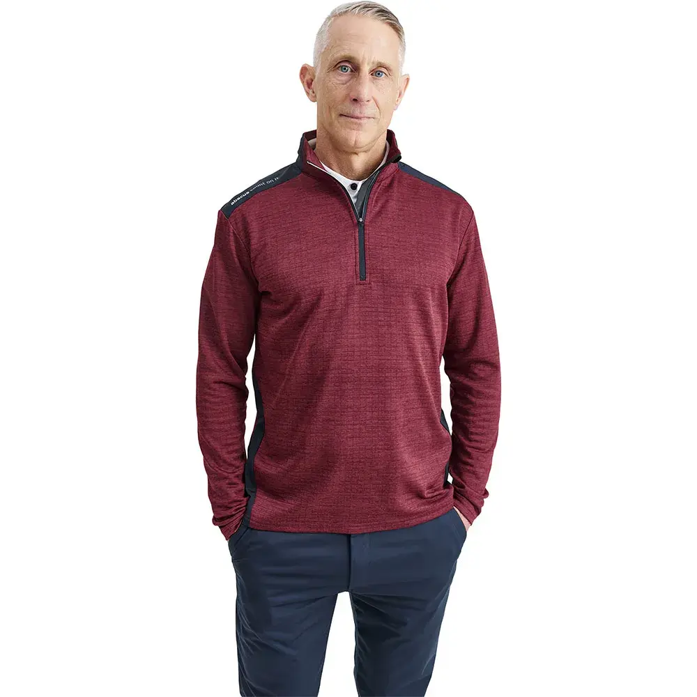 Кофта Sunningdale с застежкой на полумолнию выполнена из очень эластичного меланжевого флиса с односторонним начесом. Внутренняя сторона с клетчатым узором обеспечивает улучшенную циркуляцию воздуха, сохраняя тепло, а также обладает сухим охлаждением и влагоотводящими свойствами. Однотонная контрастная ткань на плечах и боковых вставках из мягкого одностороннего флиса с начесом создает спортивный образ. Логотип Abacus на правом плече и по центру спины под воротником.