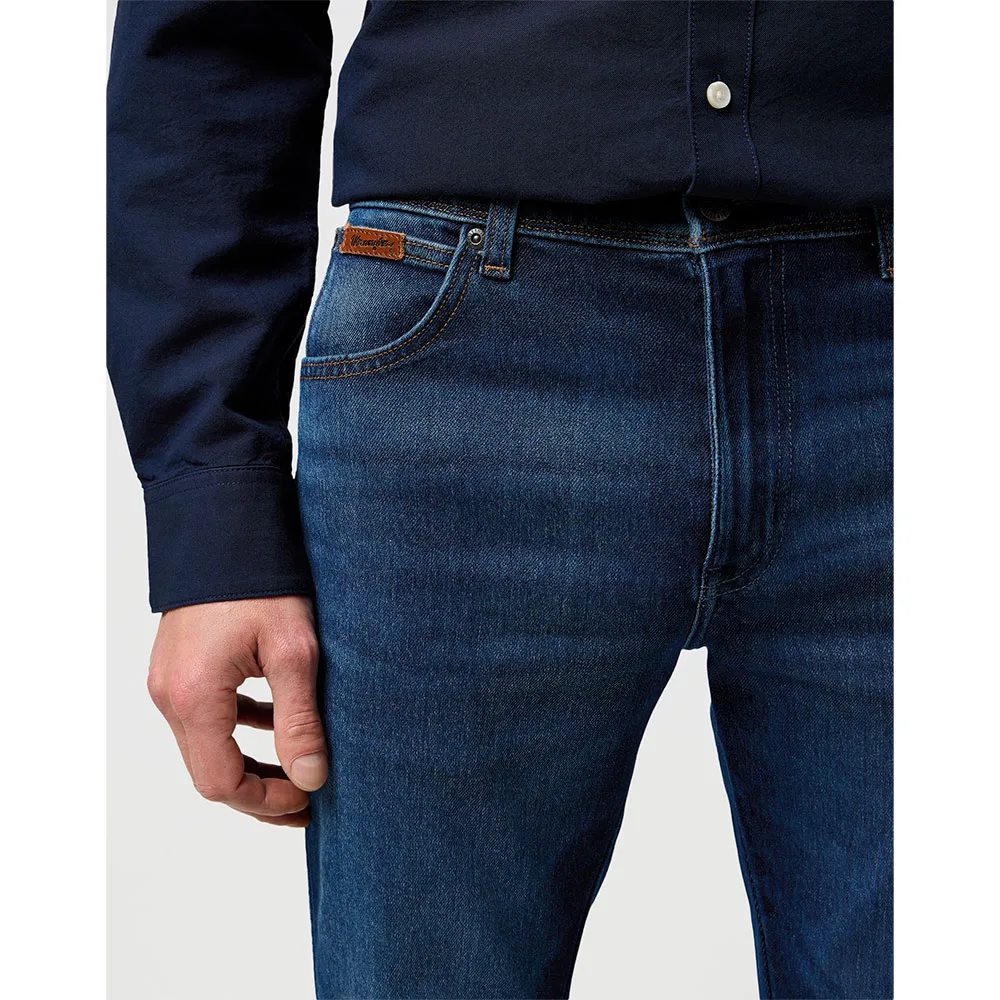 Дополнены 7 шлевками для ремня, W-образной строчкой и коричневой кожаной нашивкой Wrangler сзади. карман.