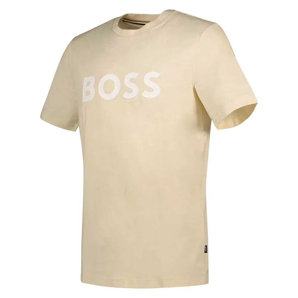 Футболка с короткими рукавами прямого кроя из одинарного джерси с контрастным логотипом с резиновым принтом от BOSS Menswear.