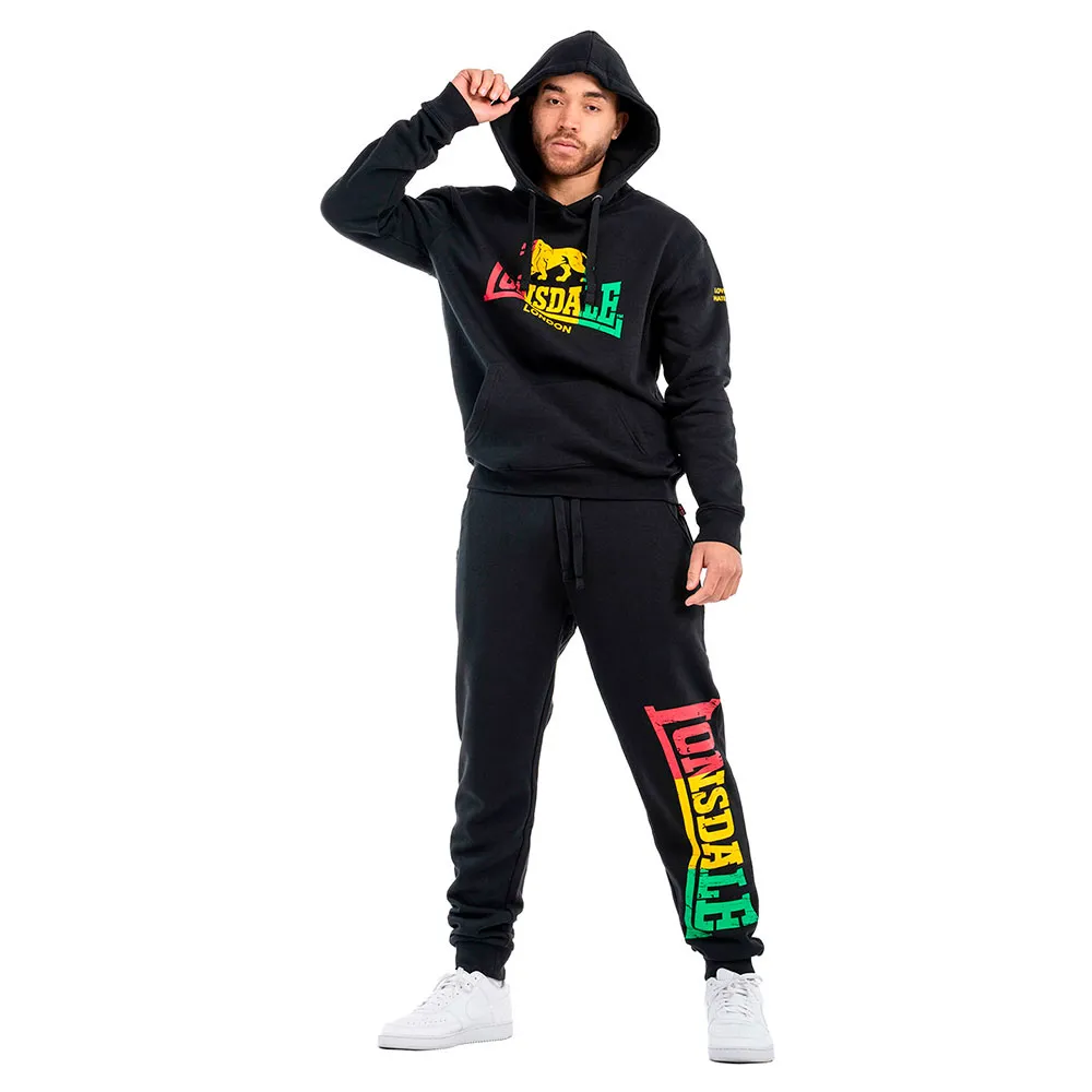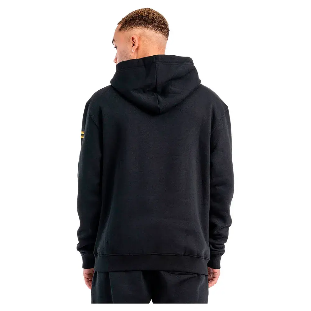 Толстовка с разноцветным принтом на груди. На левом рукаве надпись «Love Music Hate Racism».