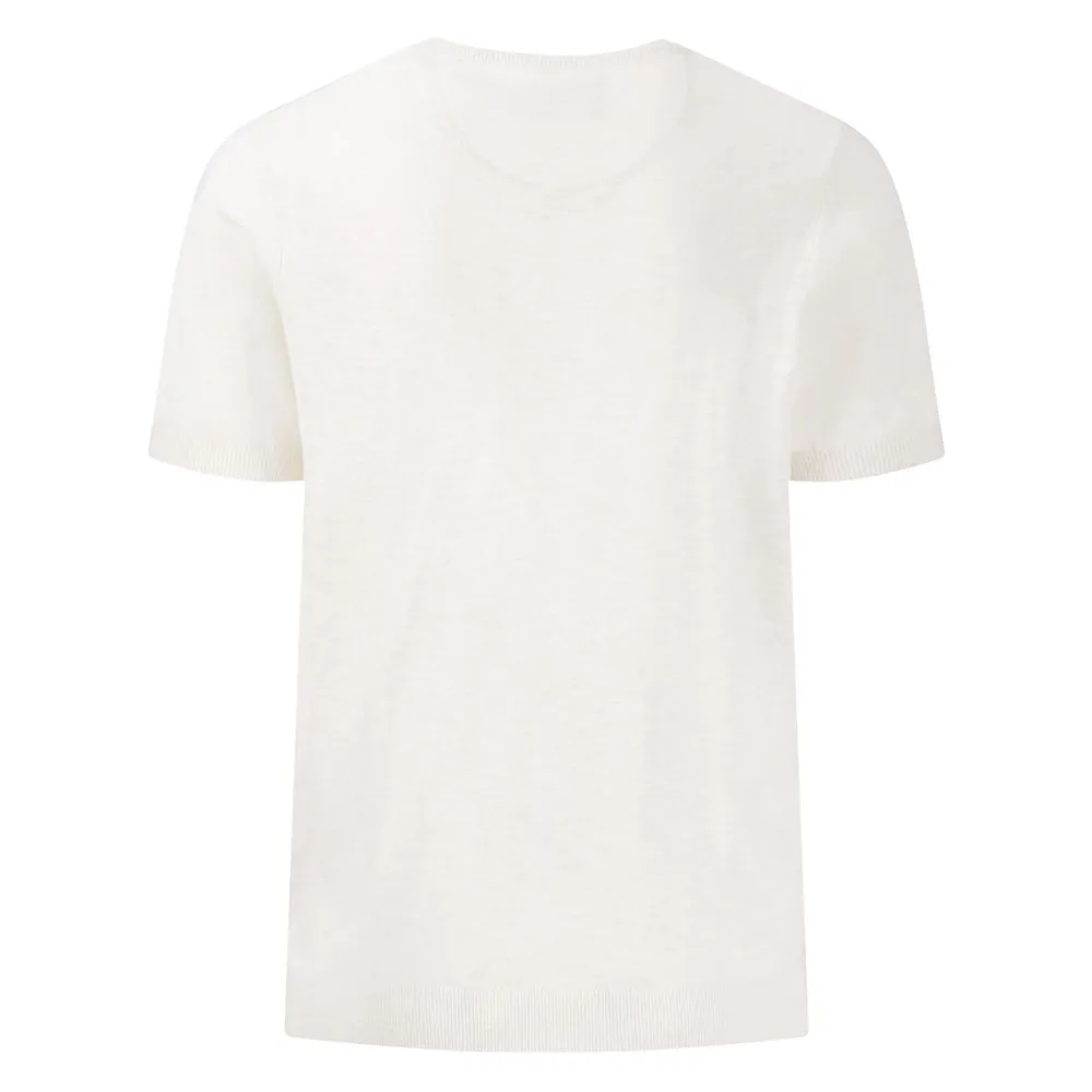 1503 701 (Пуловер с круглым вырезом, короткий рукав из хлопка и льна) Пуловер с круглым вырезом из хлопка и льна с короткими рукавами создан для жарких летних дней.