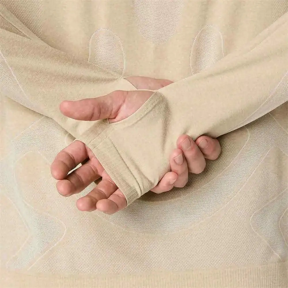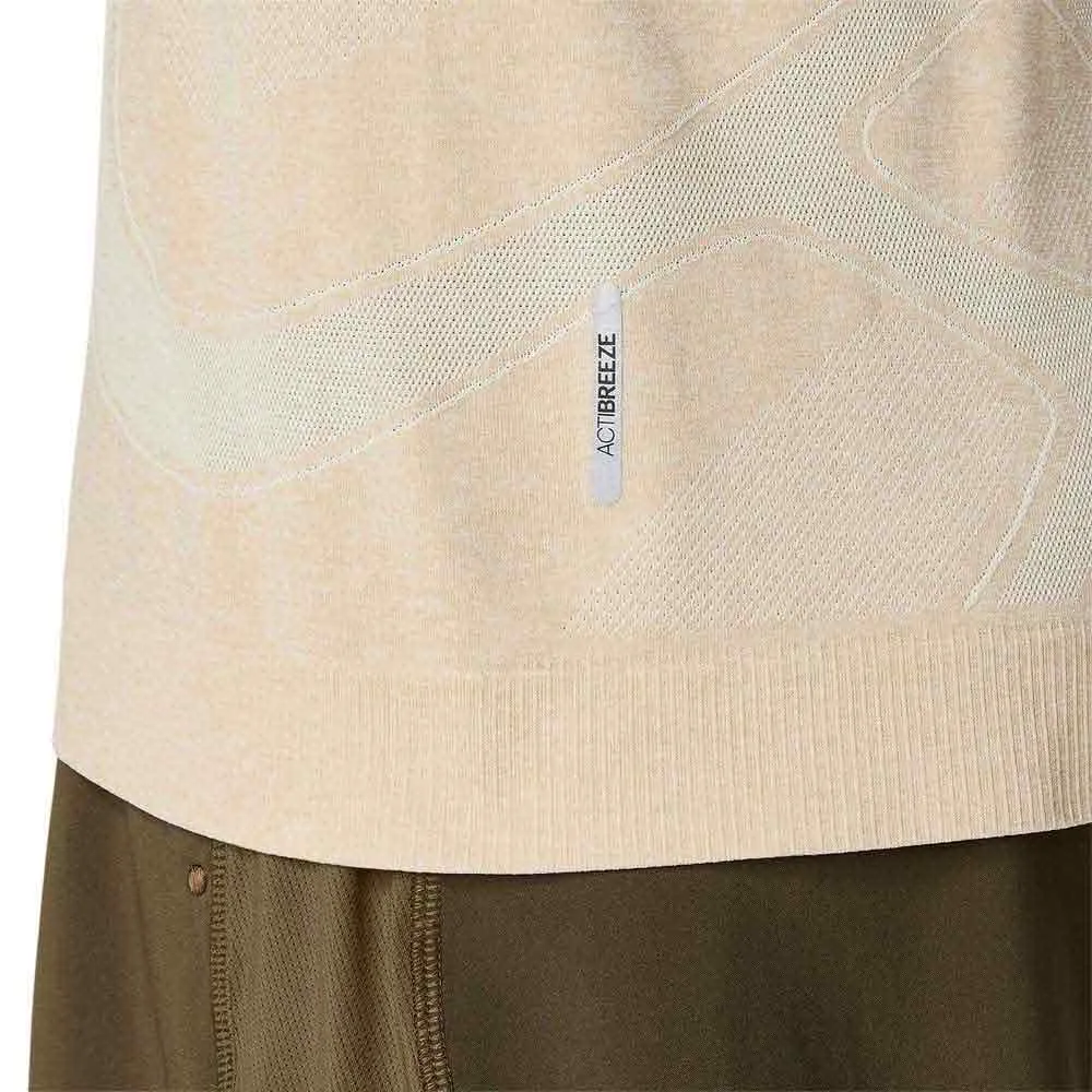 Эта модель выполнена из бесшовного трикотажа, который предотвращает натирание, обеспечивая комфорт и концентрацию внимания. В этой модели используется технология Actibreeze со стратегически расположенными зонами вентиляции, повторяющими контуры тела, которые обеспечивают целевую вентиляцию, улучшенную воздухопроницаемость и комфорт. Прорези для больших пальцев на рукавах обеспечивают удобство во время ежедневных пробежек. Не менее 50% основного материала одежды изготовлено из переработанного полиэстера для сокращения отходов и выбросов углерода.