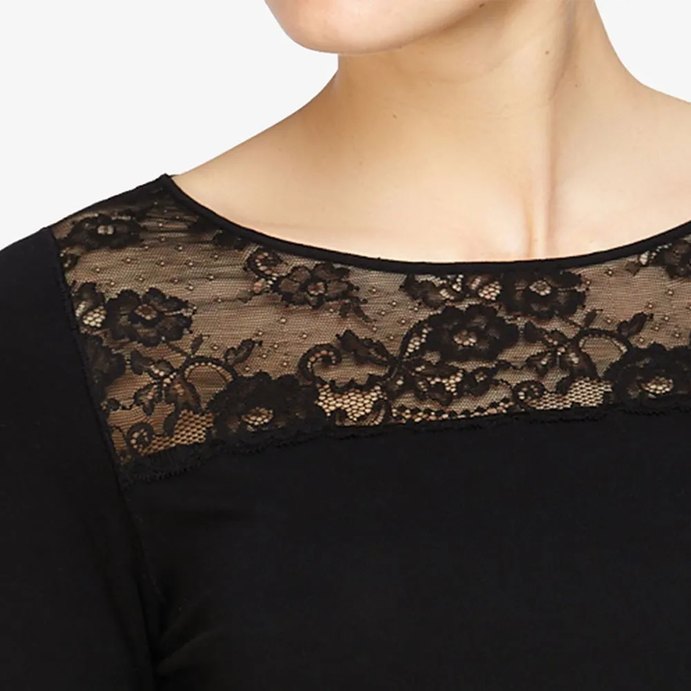 Модель Avet выполнена из Tencel с длинными рукавами и французским кружевом на горловине и манжетах рукавов.