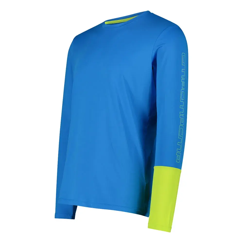 Джемпер для фрибайка с длинными рукавами из эластичной меланжевой ткани. Технология Dry Function способствует испарению пота, сохраняя тело сухим, а обработка Cool Menthol Boost дарит приятное ощущение свежести. Одежда в спортивном стиле благодаря цветным блокам и логотипу, напечатанному на рукаве.