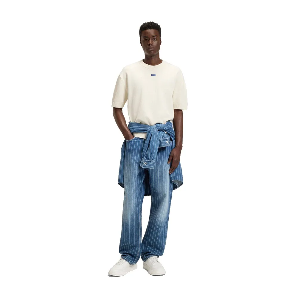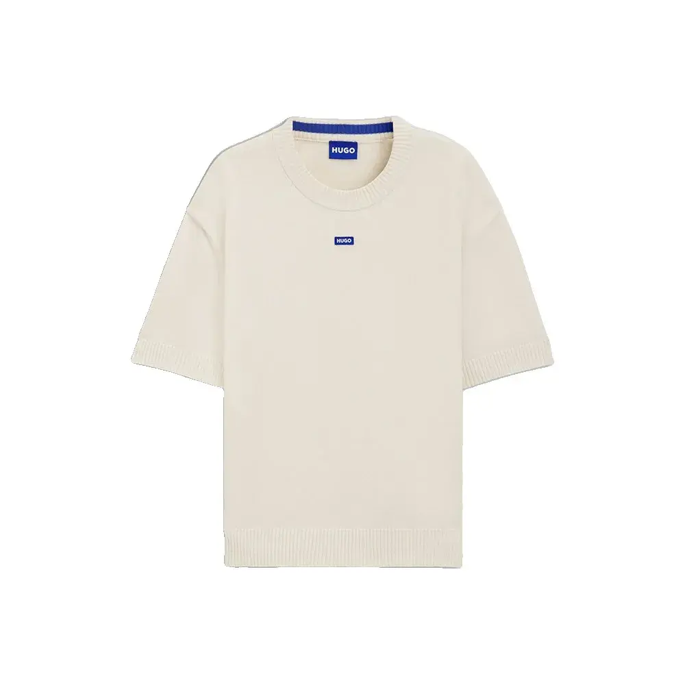 Этот трикотажный свитер HUGO Menswear с логотипом украшен значком и имеет короткие рукава для создания современного многослойного образа. Мягкая пряжа с добавлением хлопка. Ребристый вырез горловины.