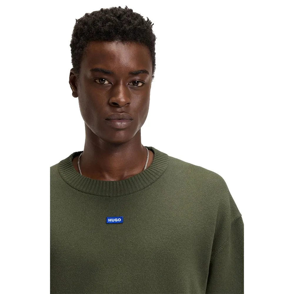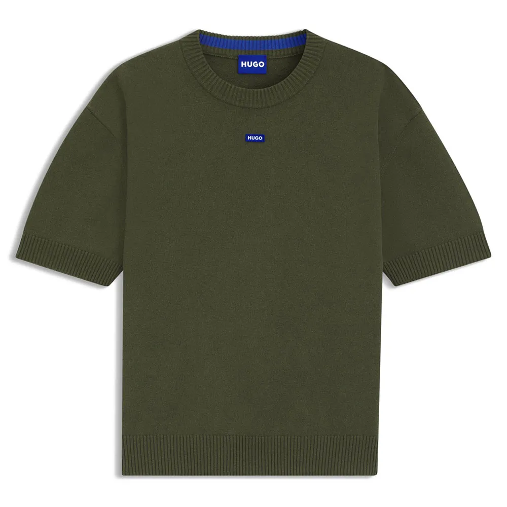 Этот трикотажный свитер HUGO Menswear с логотипом украшен значком и имеет короткие рукава для создания современного многослойного образа. Мягкая пряжа с добавлением хлопка. Ребристый вырез горловины.