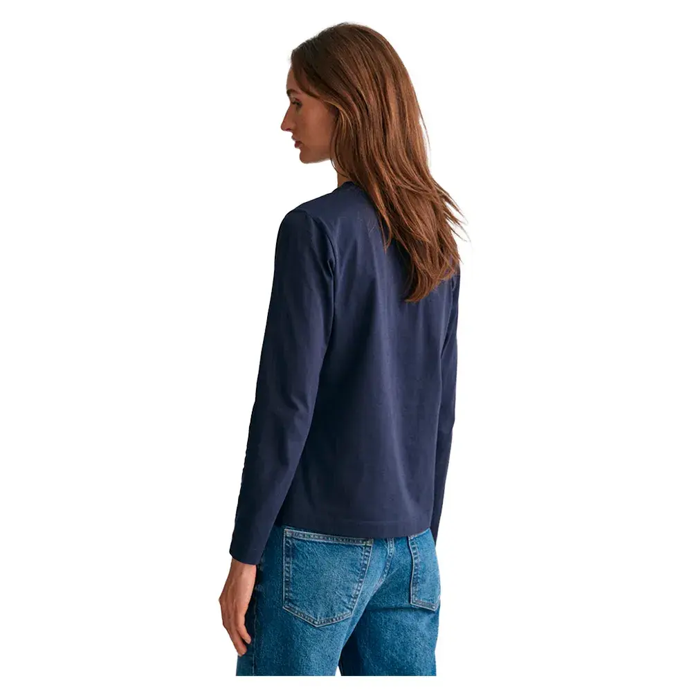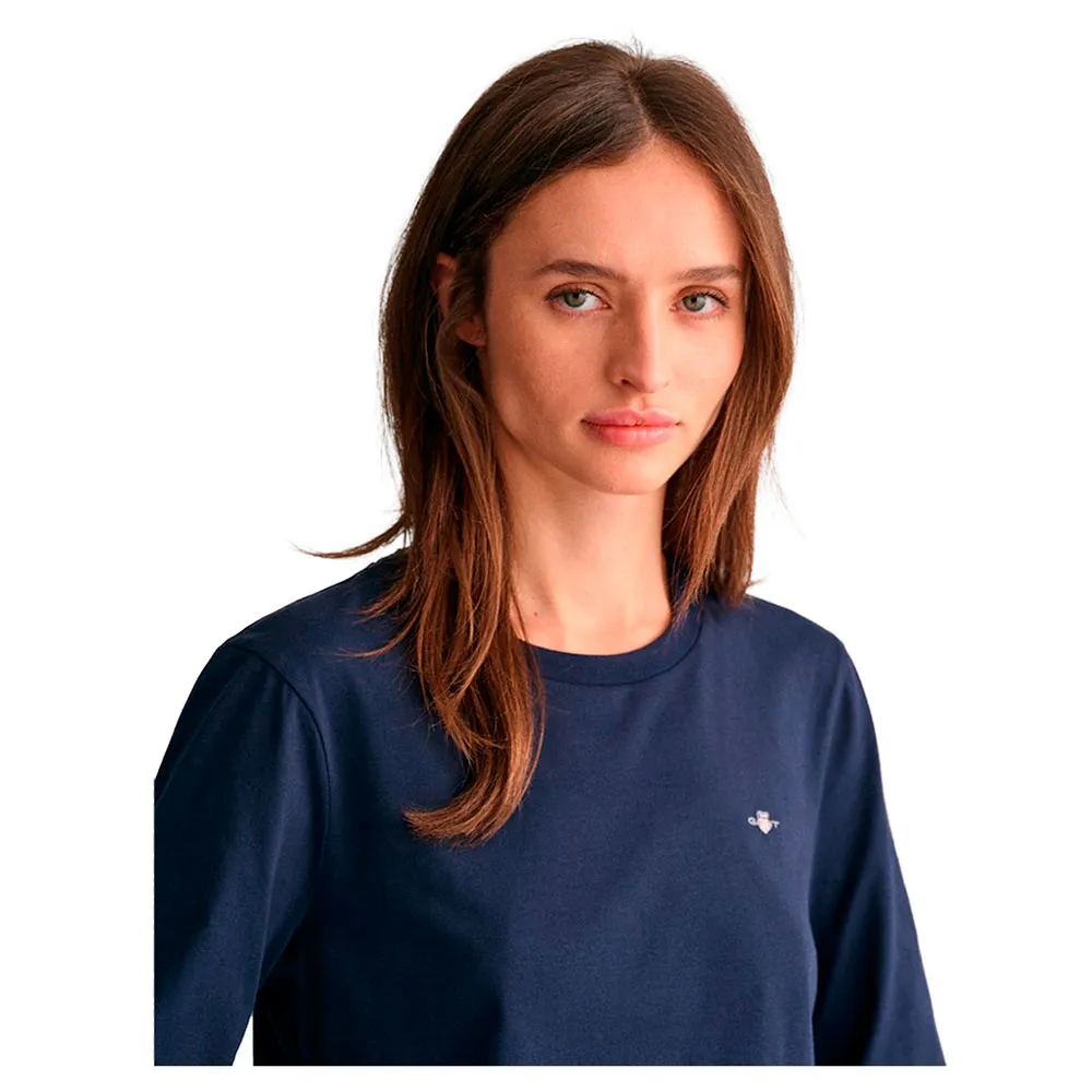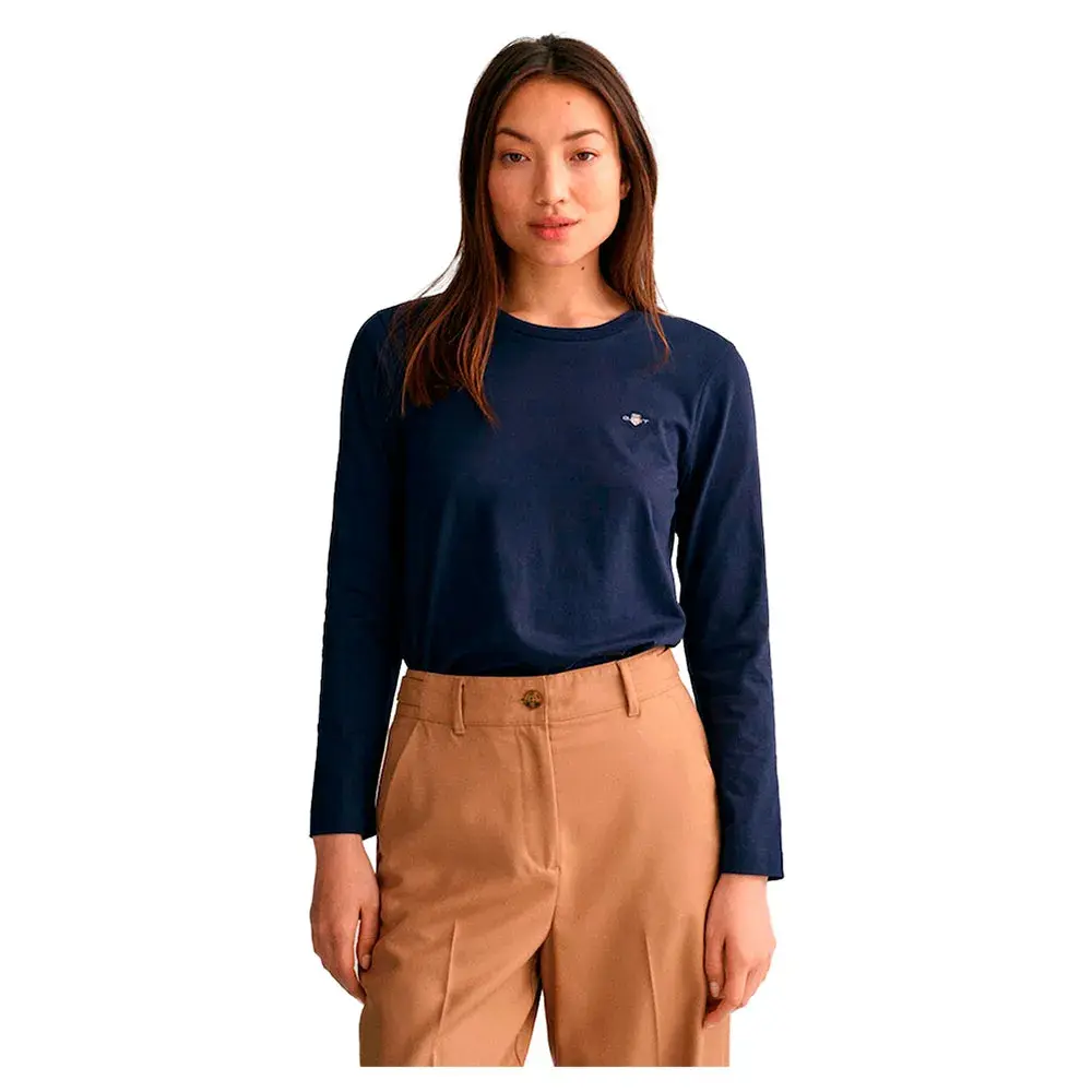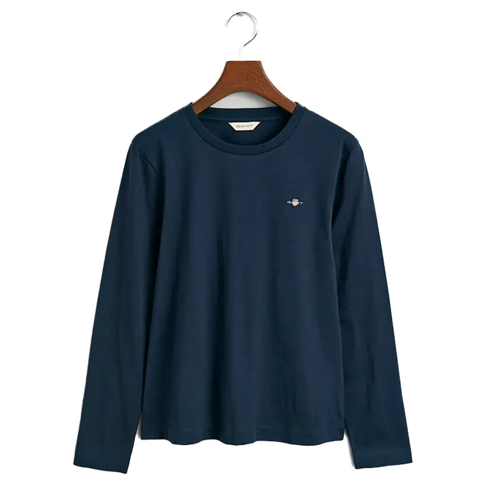 Эта мягкая хлопковая трикотажная футболка имеет классический круглый вырез горловины, длинные рукава и вышитый на груди рисунок щита GANT.