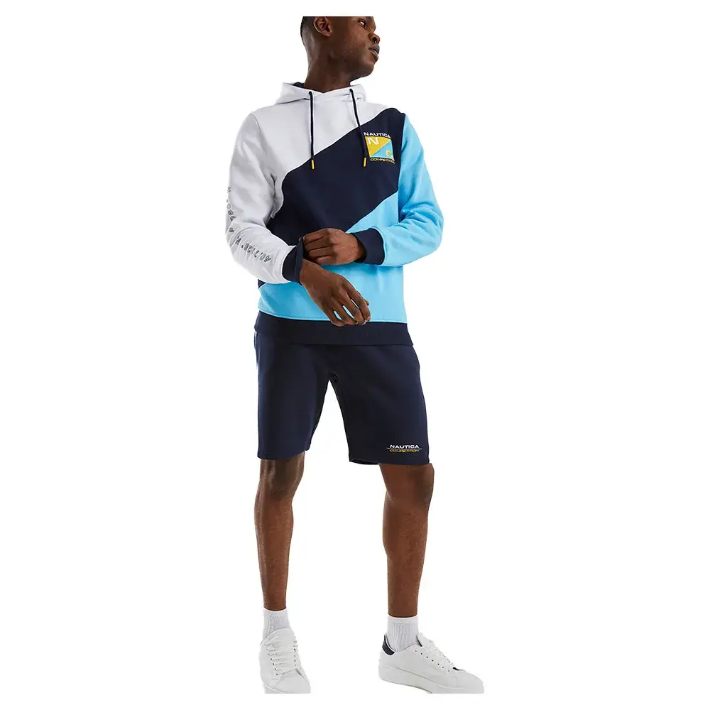 Мужская хлопковая толстовка с капюшоном бренда NAUTICA, контрастными полосками, принтом на груди и вышитым логотипом на рукаве.