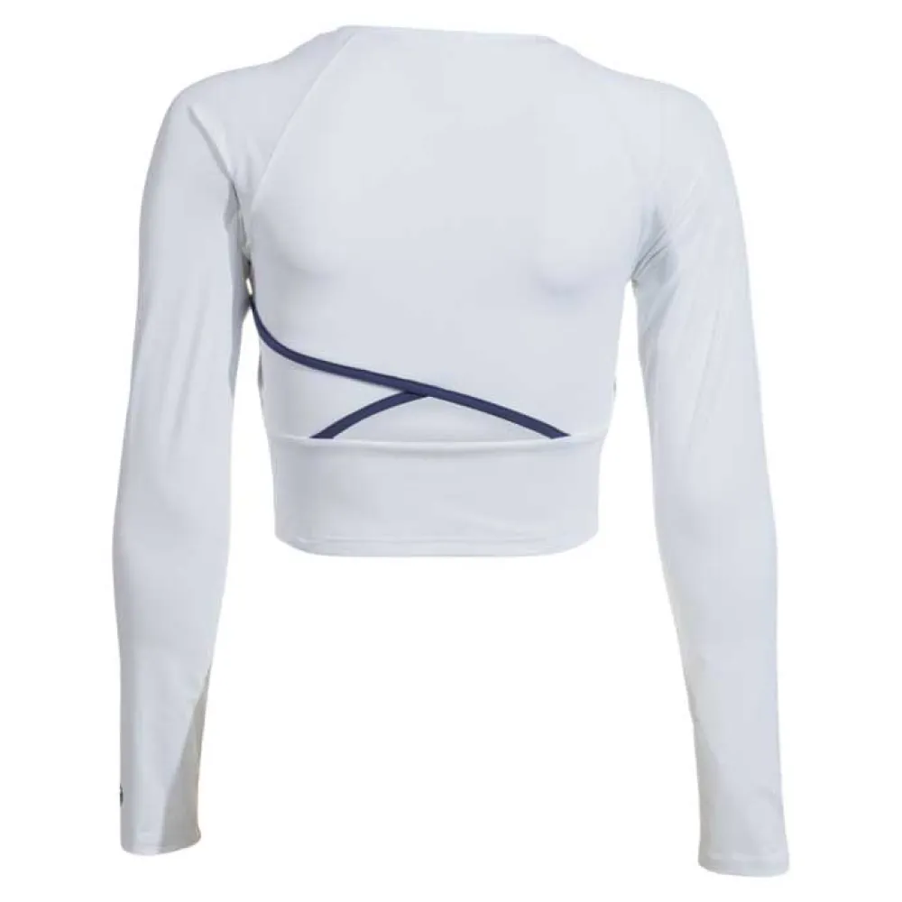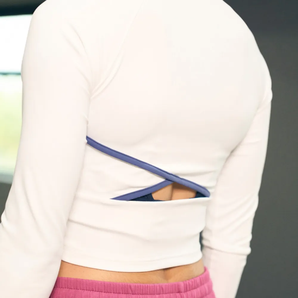 Женский укороченный топ с длинным рукавом. Благодаря суперэластичной ткани он идеально облегает тело, что делает его базовой одеждой для занятий спортом, требующим особой гибкости, например, для йоги.