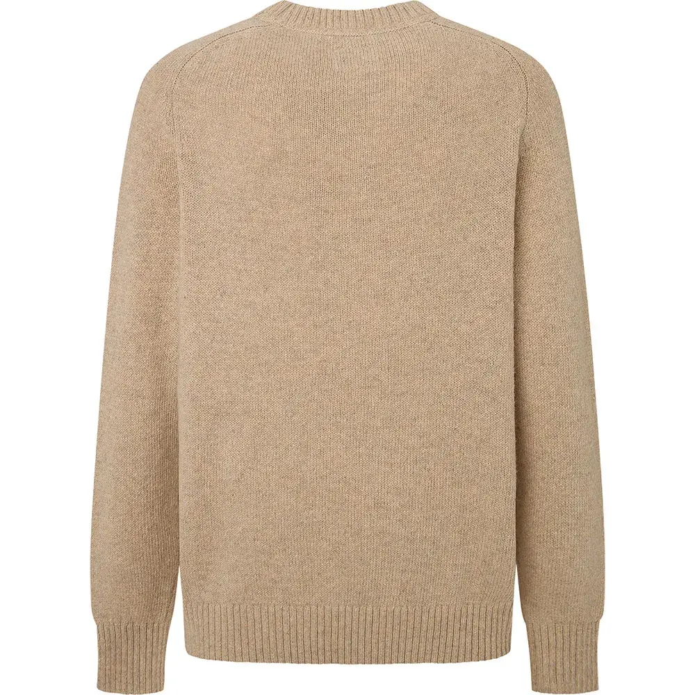 Свитер с круглым вырезом, простой вязки, с рукавами-седлами.