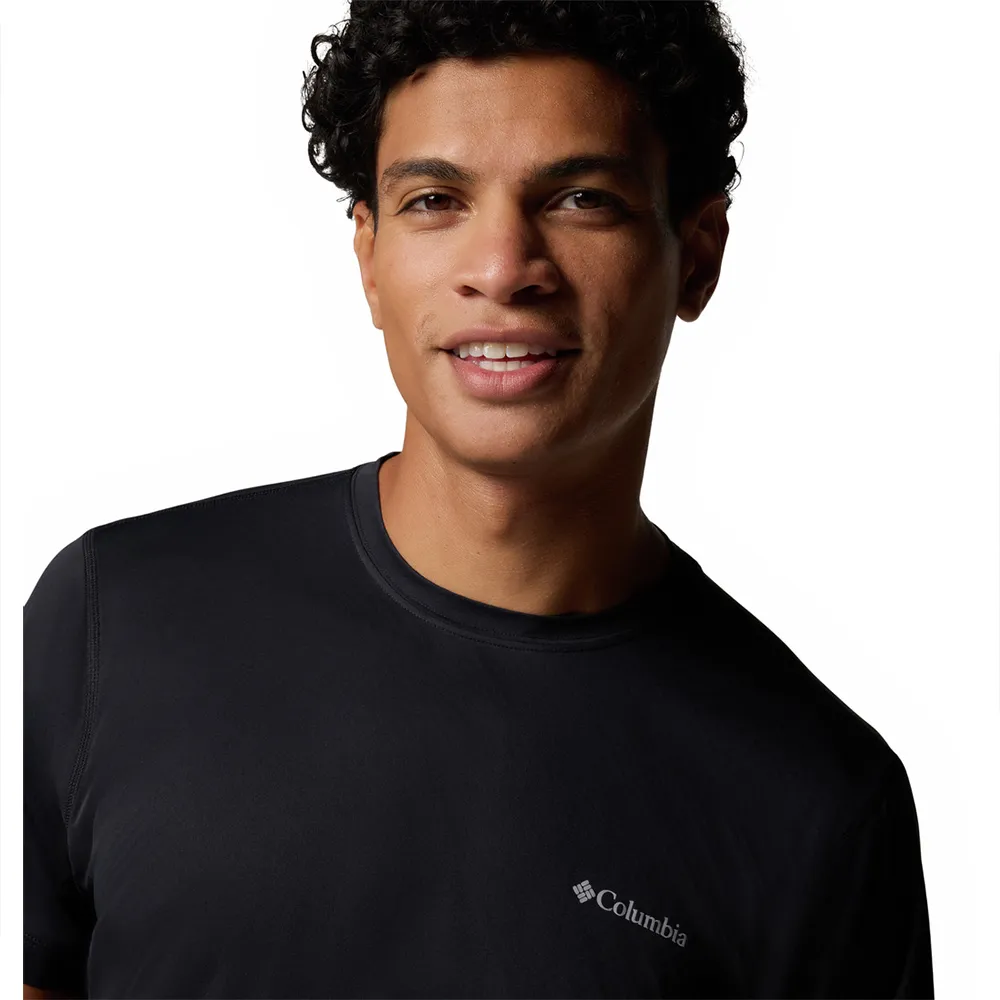 - Отправляйтесь в поход в жару в этой футболке с круглым вырезом и системой охлаждения, активируемой потом, чтобы вы чувствовали себя прохладно, когда температура повышается.