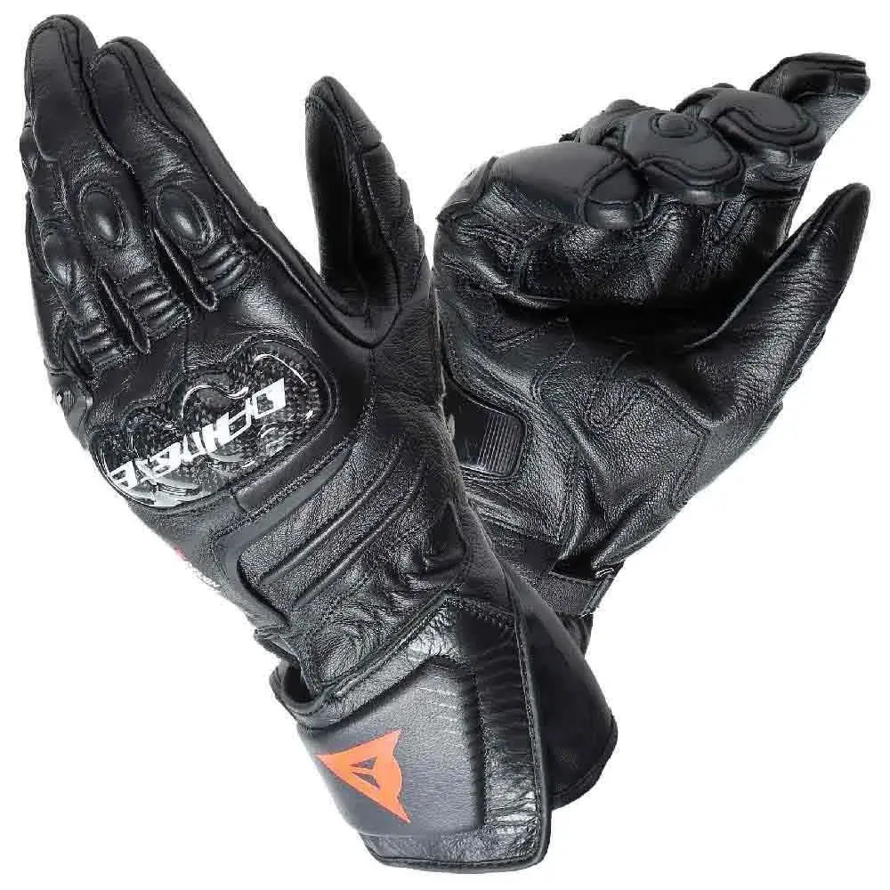 Мотоциклетные перчатки Dainese Carbon 4 long - сертифицированные перчатки, гарантирующие высочайший уровень защиты благодаря использованию технических материалов, вдохновленных соревновательной ездой, таких как конструкция из козьей кожи и эргономичные карбоновые наколенники.