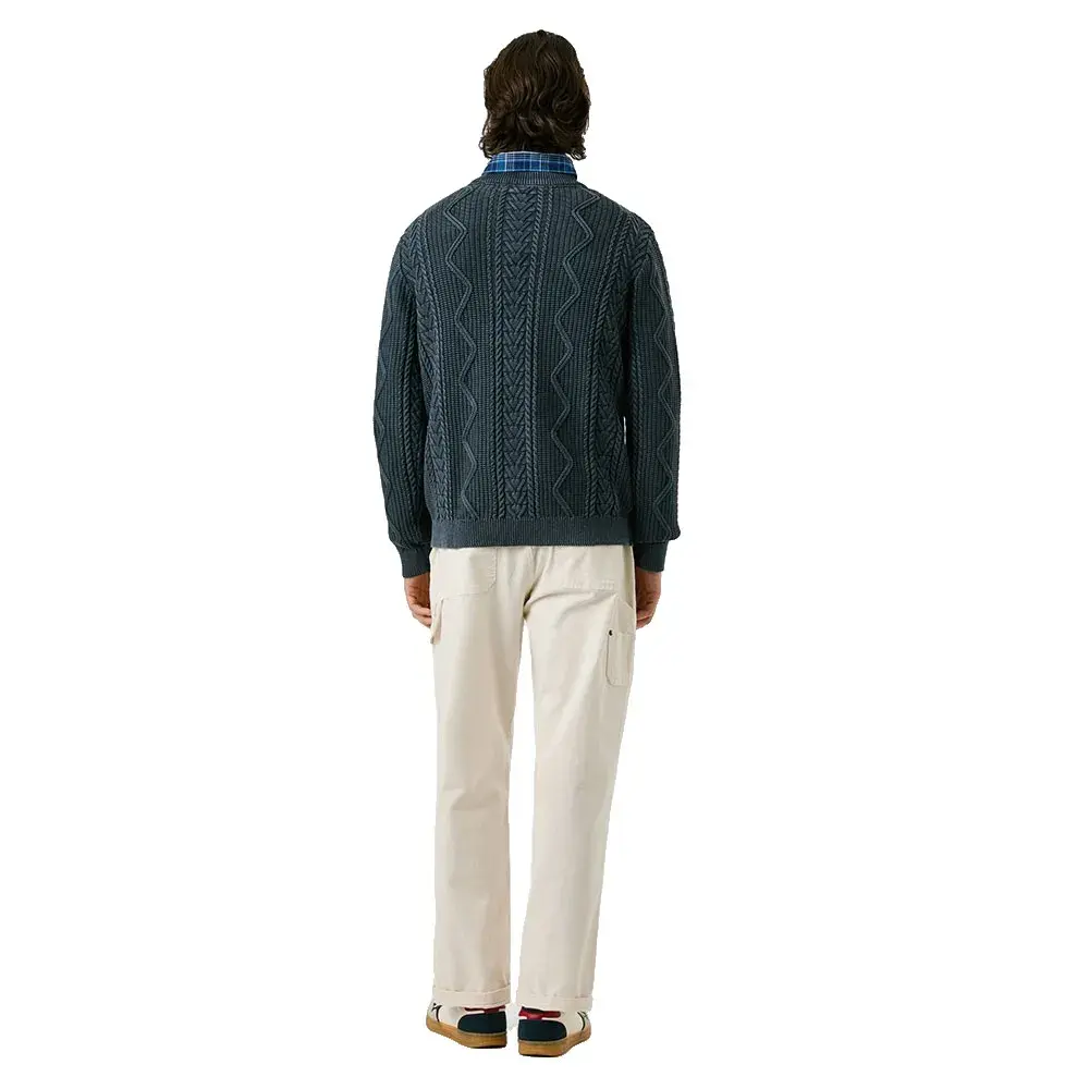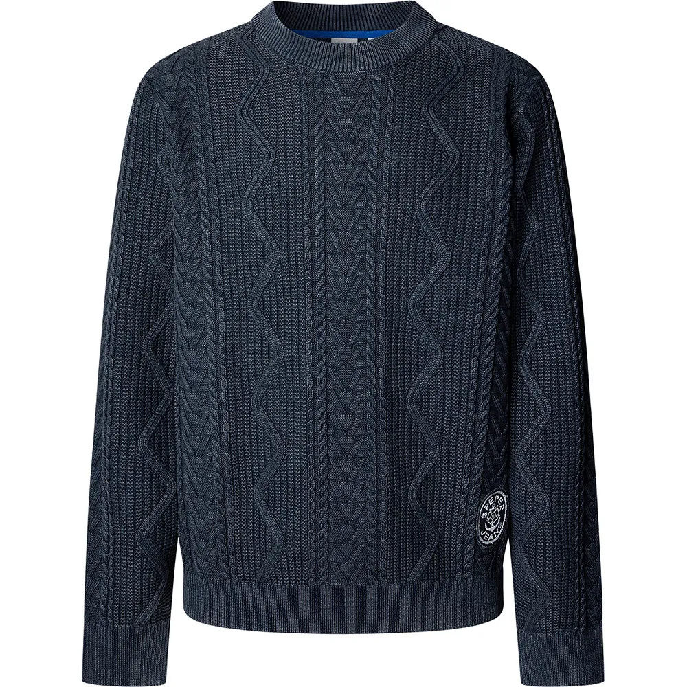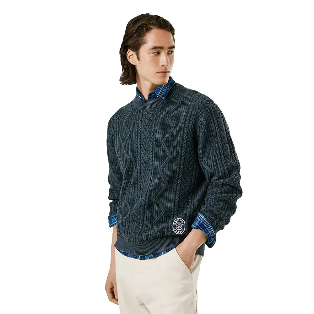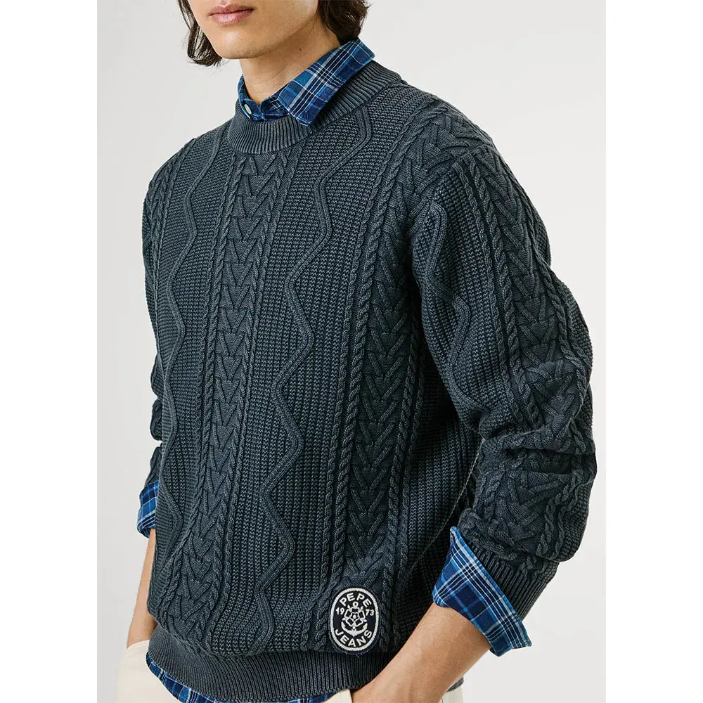 Джемпер из хлопчатобумажной пряжи с круглым вырезом, плотностью 5 кг, с вышитой фетровой нашивкой на подоле.