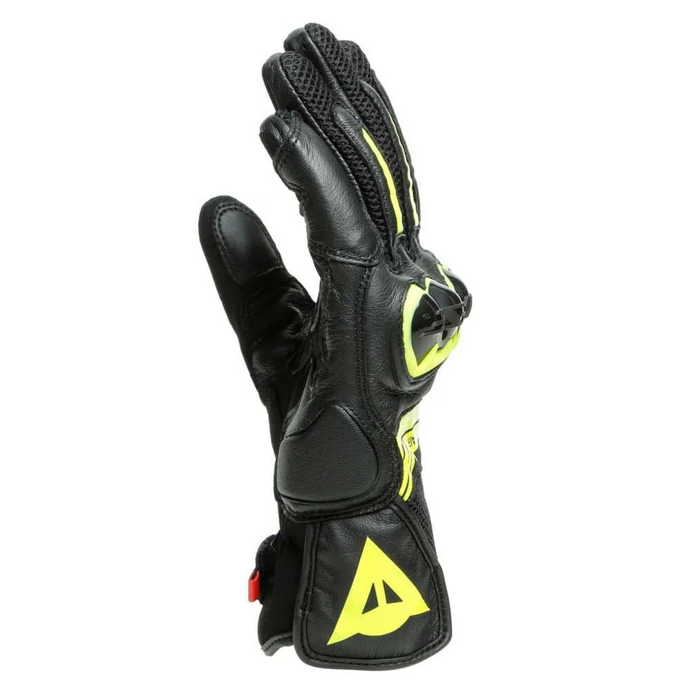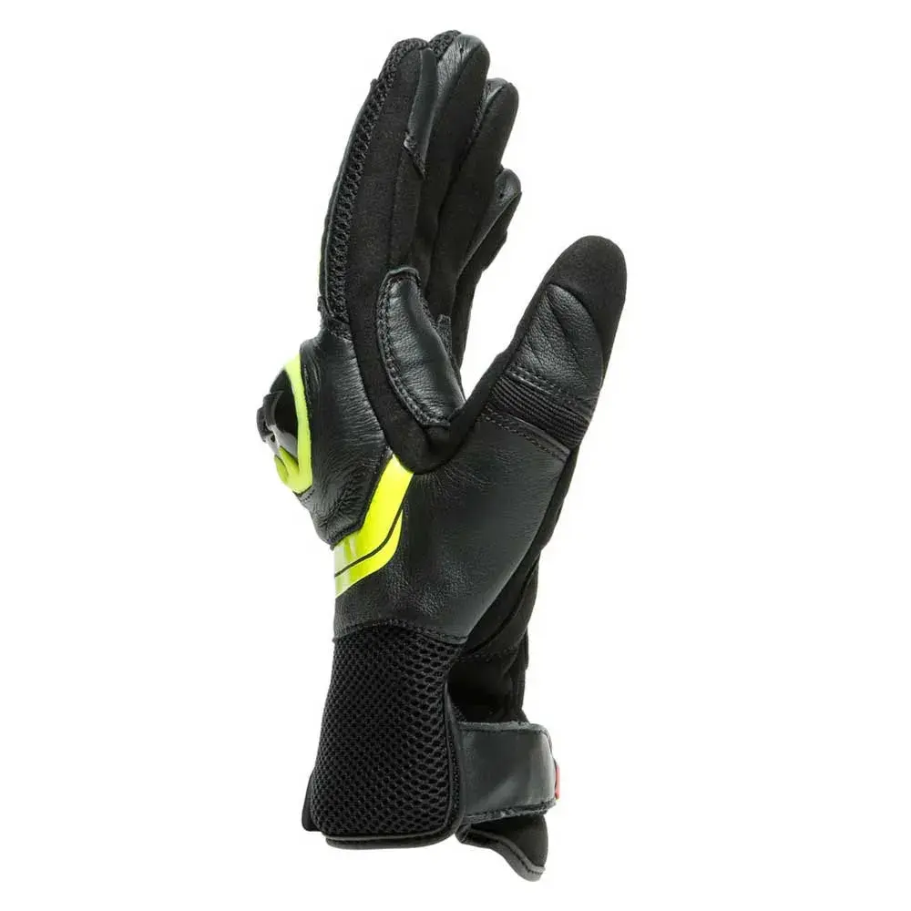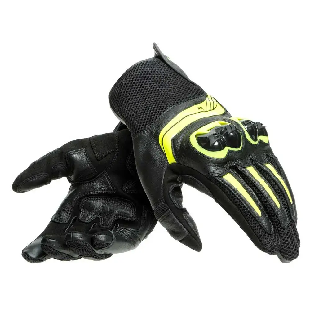 Кожаные мотоциклетные перчатки унисекс с сертифицированной защитой суставов, дышащими сетчатыми вставками и технологией Smart Touch Универсальные и удобные короткие перчатки Dainese унисекс Mig 3 изготовлены из кожи в наиболее открытых частях, мягкой замши Amica на ладони и вентилируемой сетки для максимального комфорта даже в жаркие дни.