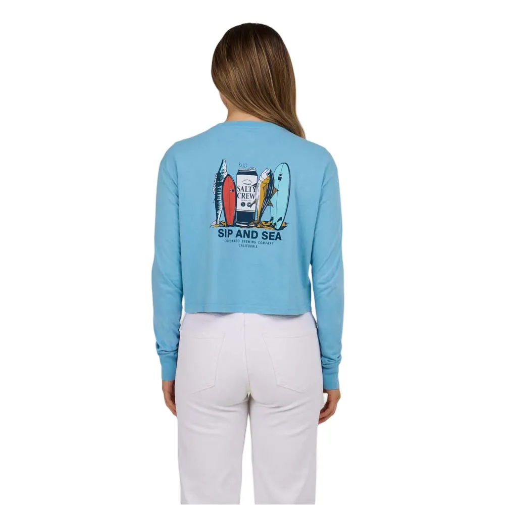 Укороченная футболка с длинным рукавом SALTY CREW Sip & Sea — незаменимая вещь для любой женщины, которая ценит качество, комфорт и стиль. Это универсальная вещь, которую можно носить как с нарядным, так и с повседневным образом, что делает ее ценным дополнением к любому гардеробу. Инвестируйте в вещь, которая отражает вашу любовь к океану и олицетворяет образ жизни SALTY CREW.