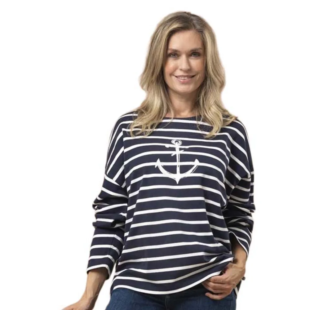 Футболка с длинным рукавом и принтом Несси от Sea Ranch — стильный и уникальный предмет женской одежды. Футболка украшена игривым принтом Несси спереди, который добавит игривости любому образу. Футболка выполнена в классическом темно-синем цвете с жемчужными акцентами, что придает ей вневременной и универсальный вид. Футболка изготовлена из мягких и приятных на ощупь материалов и идеально подходит для повседневной носки или в качестве дополнительного слоя под курткой для дополнительного тепла. Длинные рукава делают ее идеальным вариантом для межсезонья, а удобный крой сделает ее незаменимой вещью в вашем гардеробе. Добавьте немного очарования в свой повседневный образ с футболкой с длинным рукавом и принтом Несси от Sea Ranch.