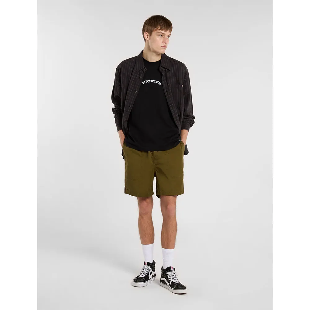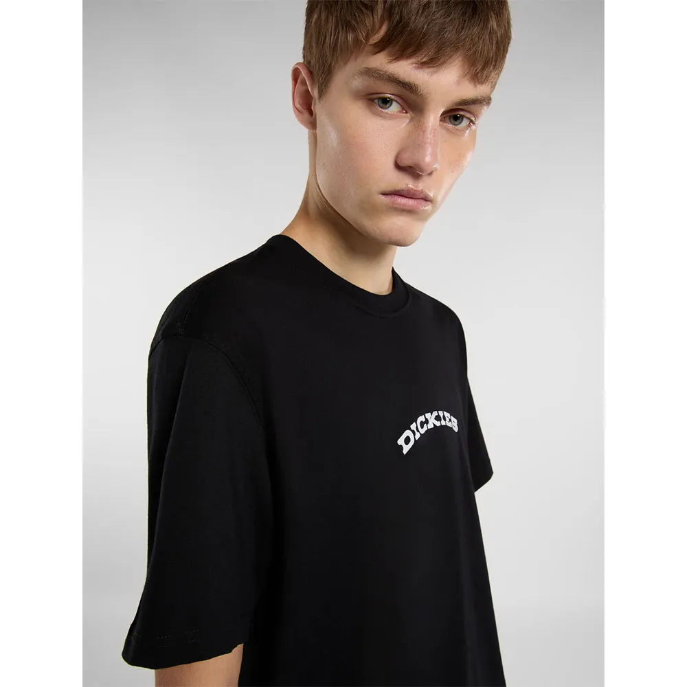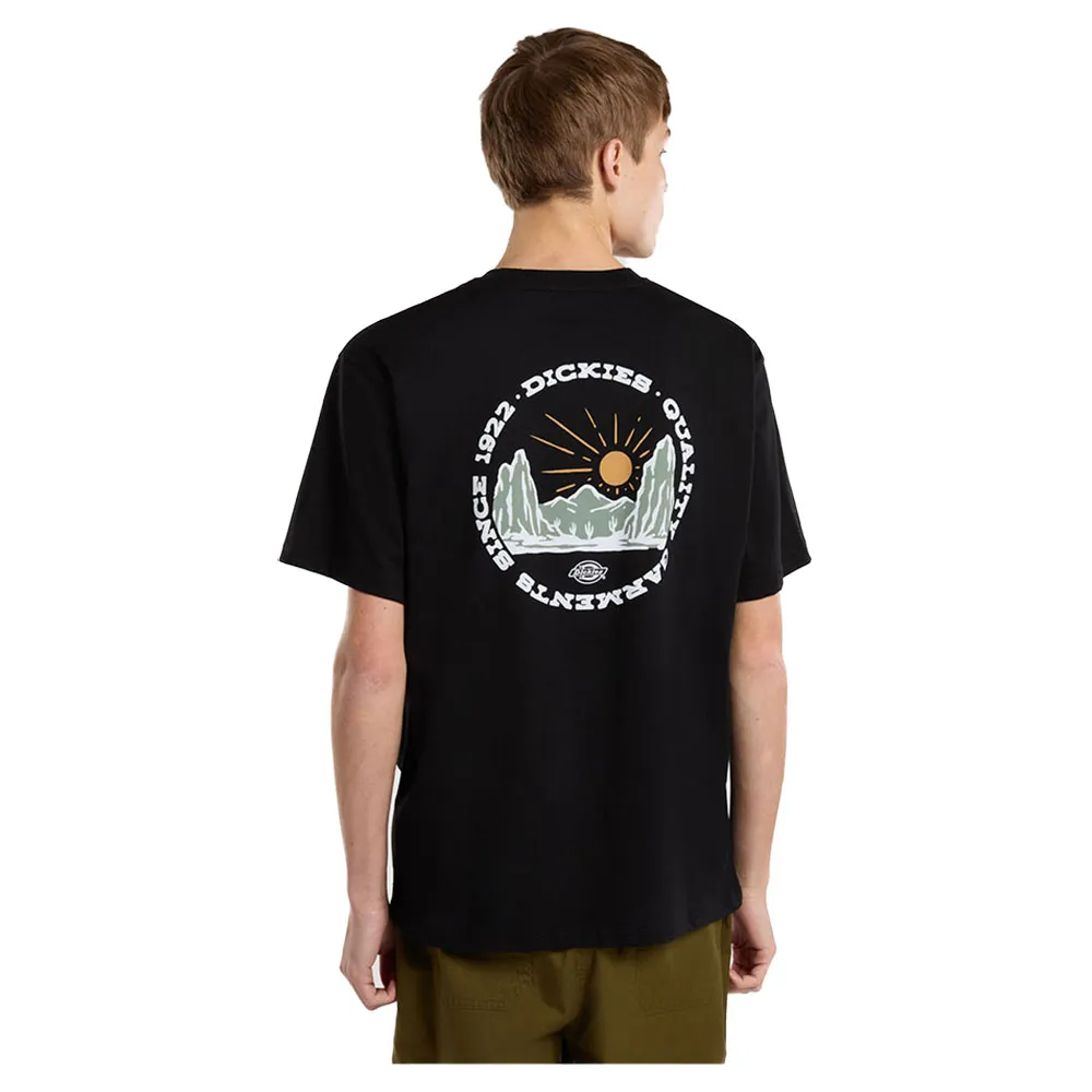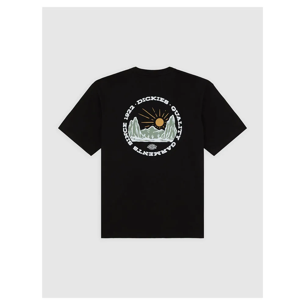 Изготовлена из 100% хлопка, с дугообразным логотипом Dickies в стиле вестерн на груди, большим круглым рисунком горного хребта на спине и тканым лейблом Dickies на подоле.
