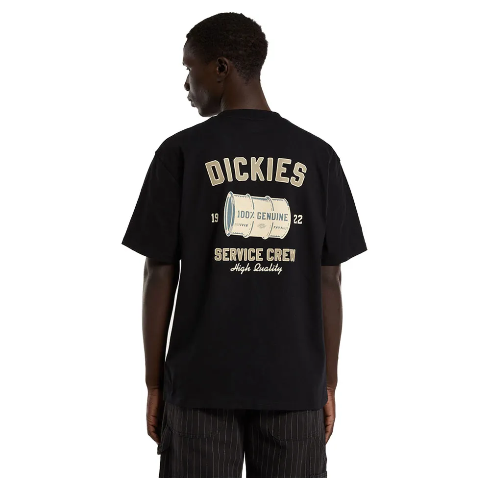 Изготовлена из 100% хлопка, с небольшим одноцветным логотипом Dickies Icon на левой стороне груди и большим разноцветным рисунком, вдохновленным историей авторемонта, на спине, а также тканым лейблом Dickies над подолом.