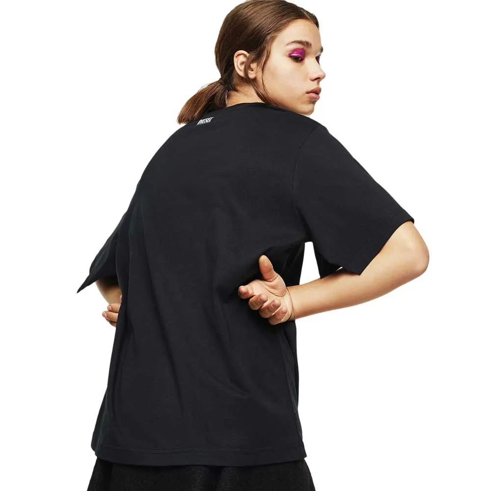 Легкая футболка из хлопкового джерси с принтом в виде лица и гладкой прорезиненной поверхностью.