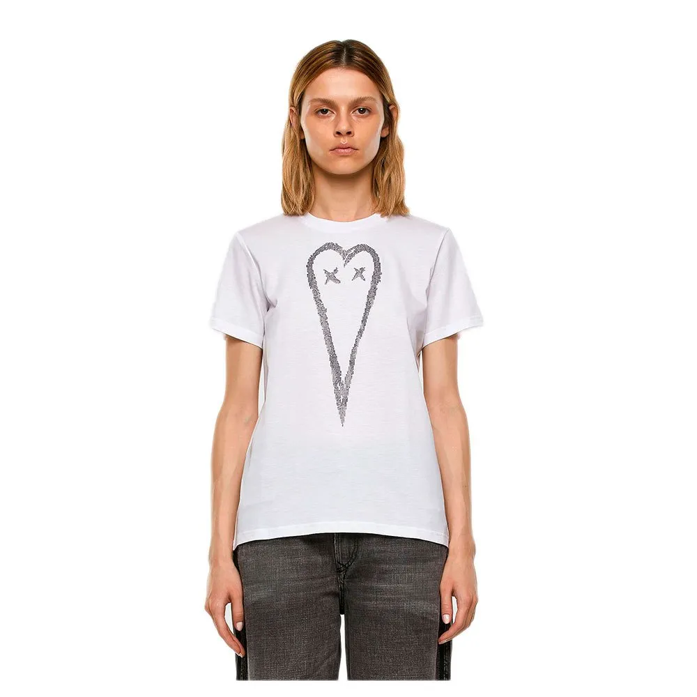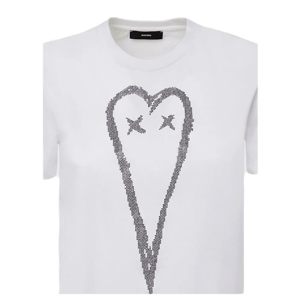 Футболка стандартного кроя из мерсеризованного хлопкового джерси с надписью в виде сердца, созданной с помощью украшений из микрозаклепок.