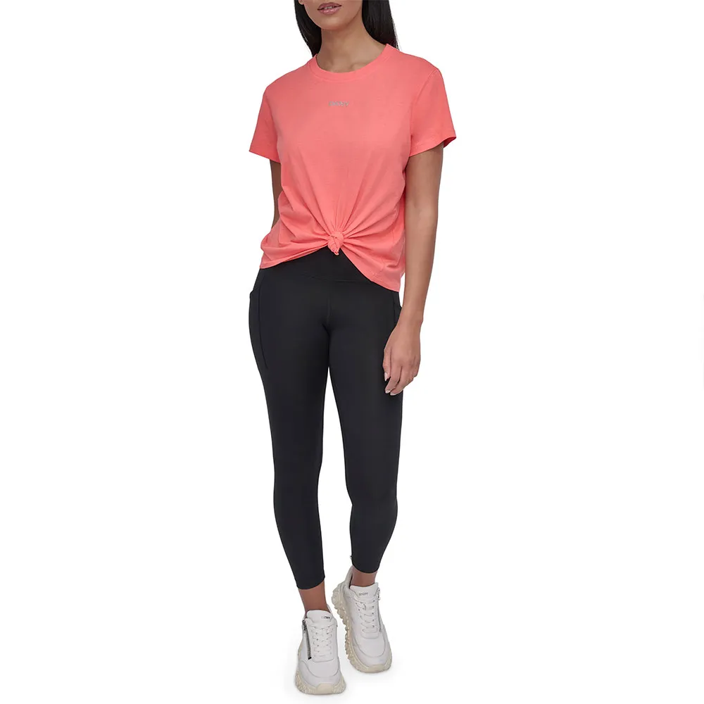 Ощутите идеальное сочетание комфорта, стиля и универсальности с этой футболкой, которая просто необходима. Футболка с коротким рукавом DKNY Mini Stud Logo Knot Front — идеальный выбор для женщин, которые ценят классический дизайн в современной интерпретации. Независимо от того, бегаете ли вы по делам, встречаетесь с друзьями за обедом или просто отдыхаете дома, эта футболка позволит вам выглядеть и чувствовать себя наилучшим образом.