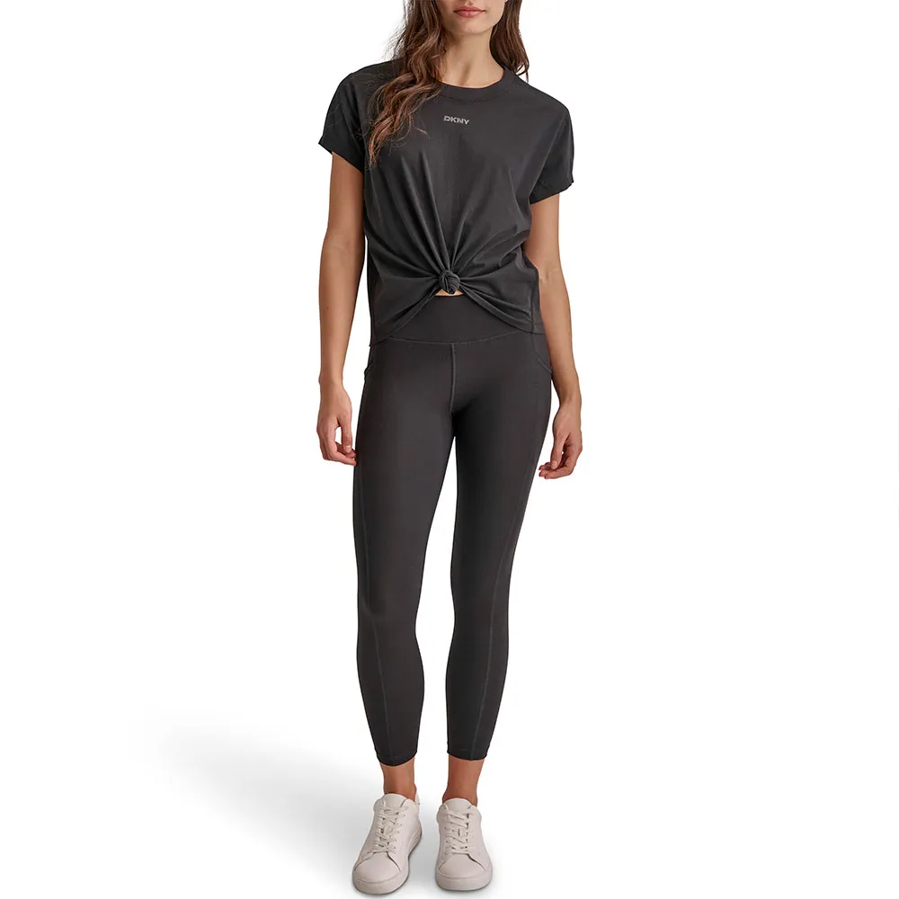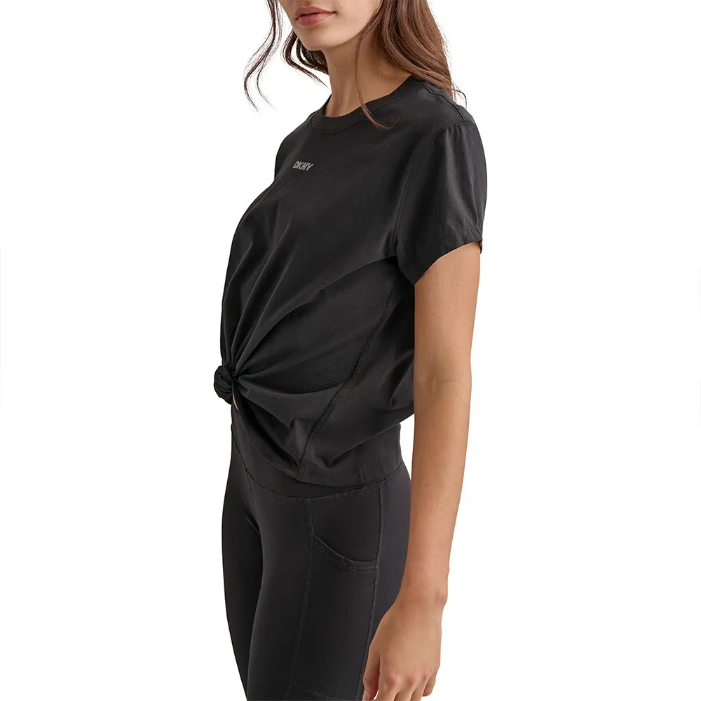 Ощутите идеальное сочетание комфорта, стиля и универсальности с этой футболкой, которая просто необходима. Футболка с коротким рукавом DKNY Mini Stud Logo Knot Front — идеальный выбор для женщин, которые ценят классический дизайн в современной интерпретации. Независимо от того, бегаете ли вы по делам, встречаетесь с друзьями за обедом или просто отдыхаете дома, эта футболка позволит вам выглядеть и чувствовать себя наилучшим образом.