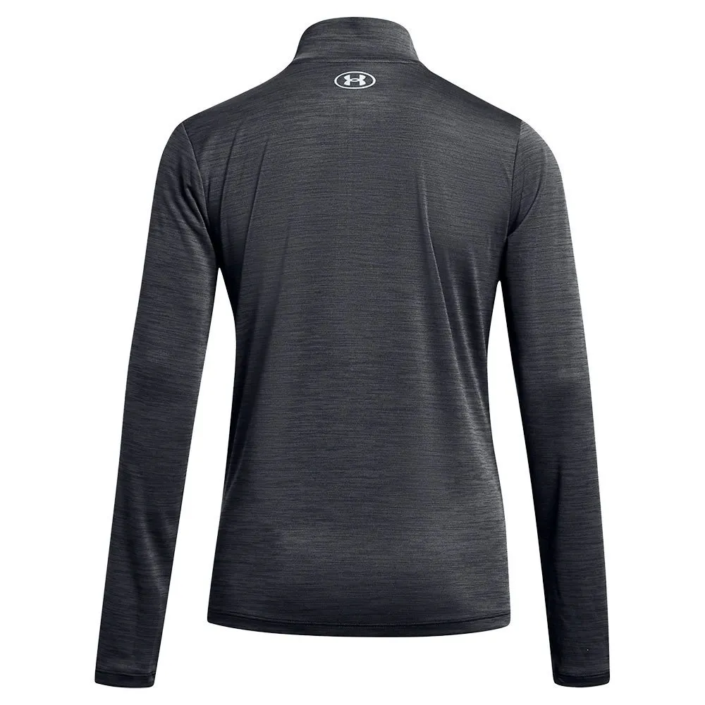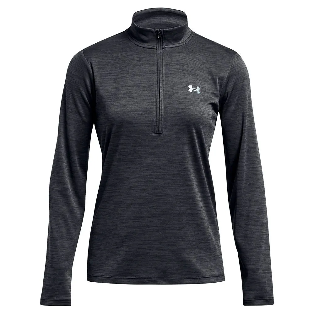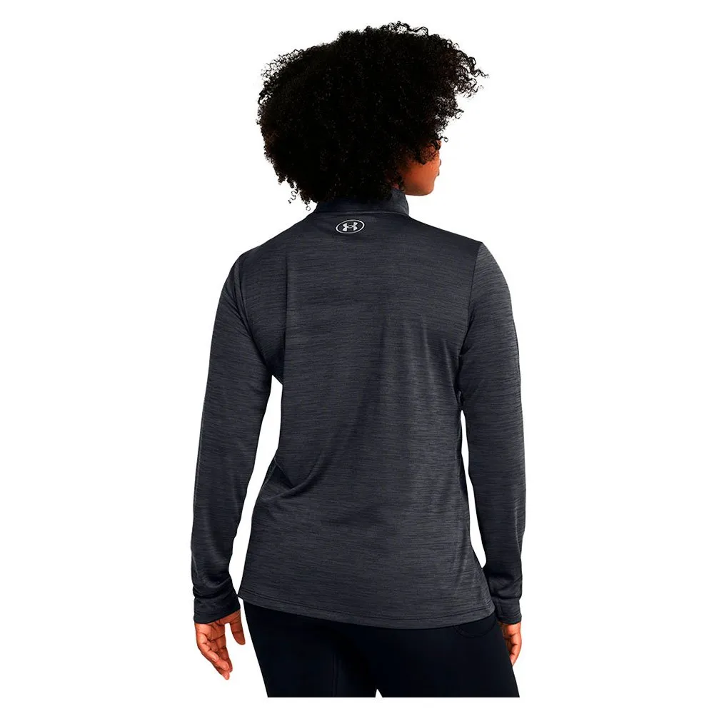 Футболка UNDER ARMOUR Velocity Twist с длинным рукавом и застежкой-молнией до середины бедра черного цвета — стильное и функциональное дополнение к спортивному гардеробу любой женщины.