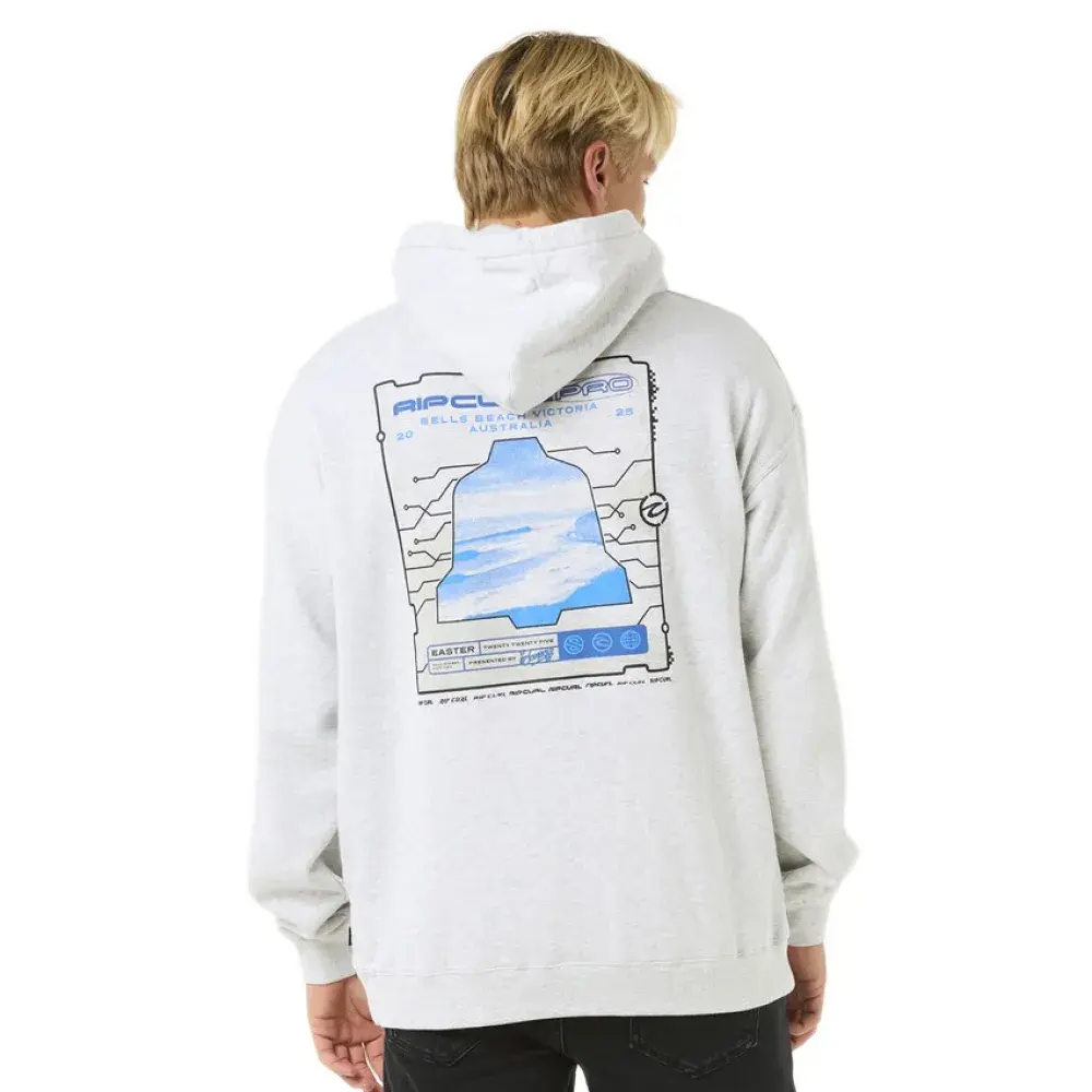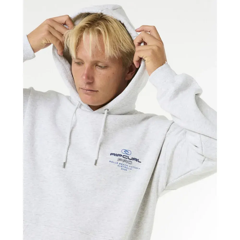 Отпразднуйте культуру серфинга с капюшоном Rip Curl Pro 25 Event Hood со свободным кроем, принтами спереди и сзади и карманом кенгурятник.