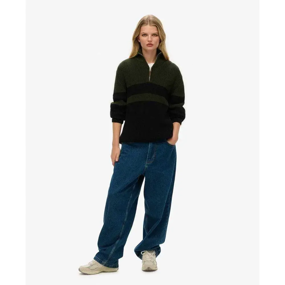 Этот свитер с выгодным вырезом на молнии обеспечивает регулируемую защиту и немного спортивного стиля. Молнии добавляют современности классическому полосатому дизайну, создавая образ, который одновременно актуален и актуален.