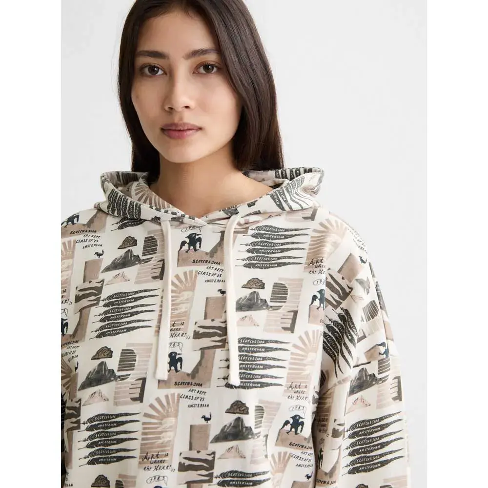 Повысьте свой гардероб женских толстовок с помощью модели, которая идеально сочетает в себе высококачественный дизайн и повседневную практичность. Свободная толстовка с капюшоном SCOTCH & SODA с принтом по всей поверхности — это больше, чем просто одежда; Это выражение индивидуальности и непринужденной крутости.