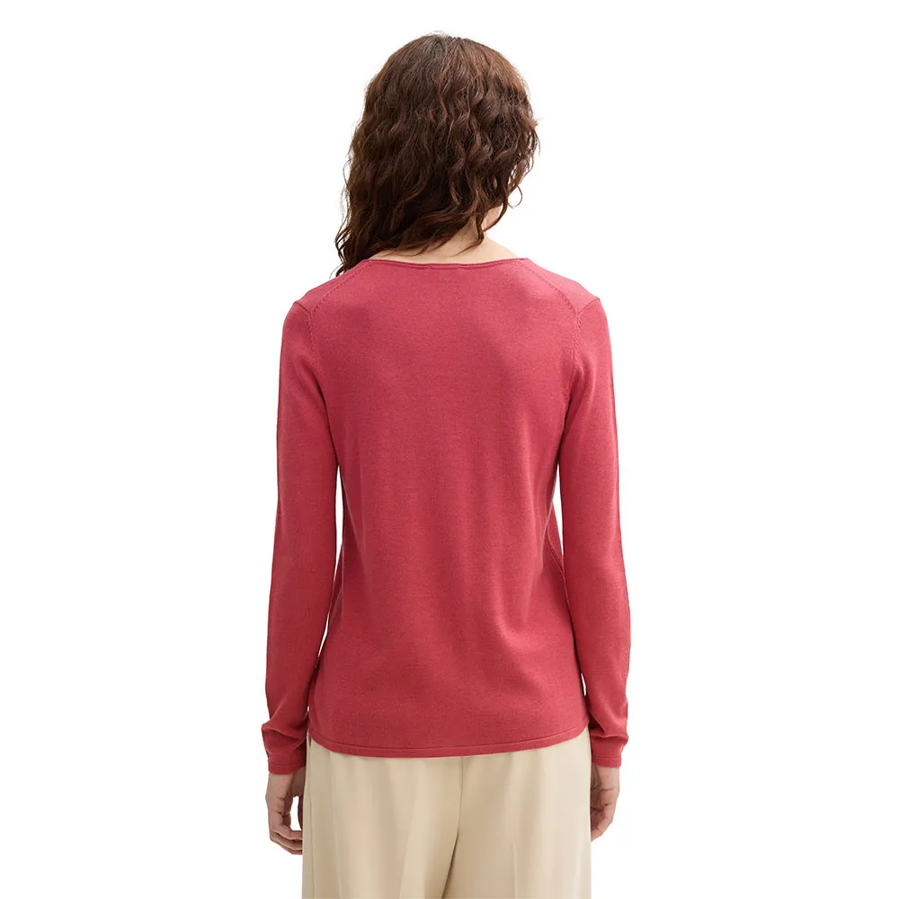 Контрастная отделка на вырезе с подвернутым краем.