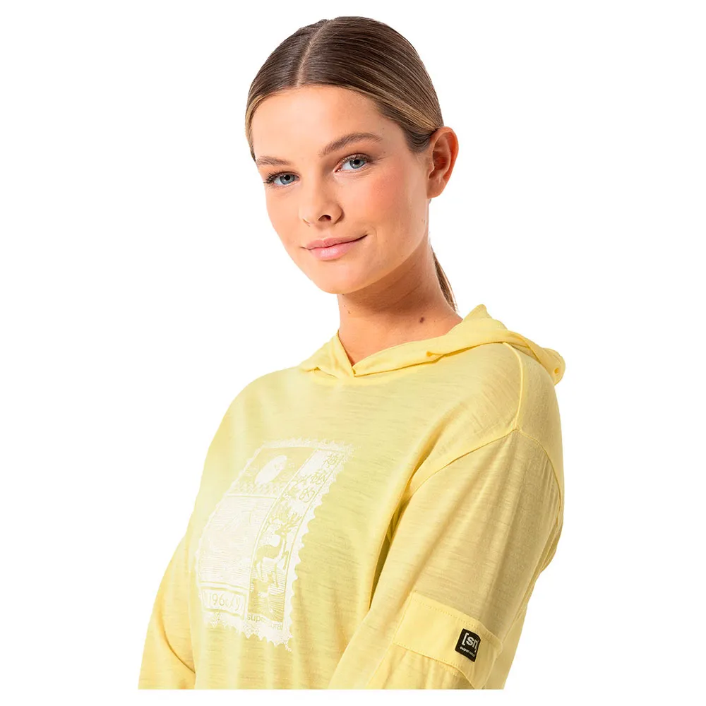 ХУДИ W STAMP LIGHT P от super.natural — идеальная женская толстовка из мериносовой шерсти для теплых дней.