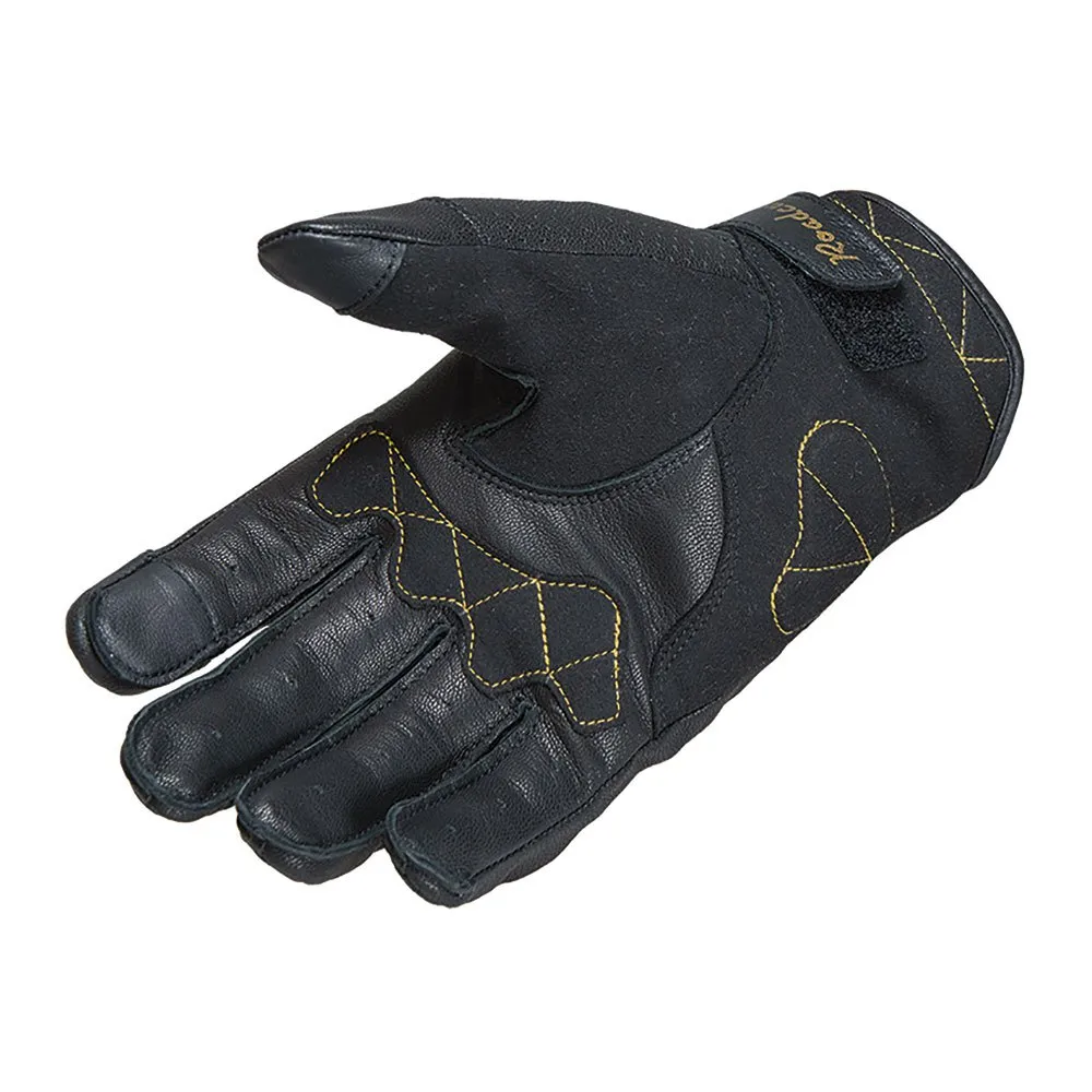 на ладони. Задняя сторона обтянута кожей с отверстиями, защищающей от жары в самые жаркие дни лета. Предварительно изогнутая конструкция пальцев для лучшей посадки и ощущения. Нашивки из токопроводящего материала, вшитые в кончики пальцев, позволяют владельцу использовать устройства с сенсорным экраном. Короткие манжеты