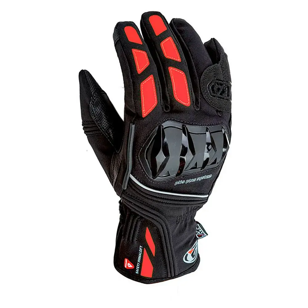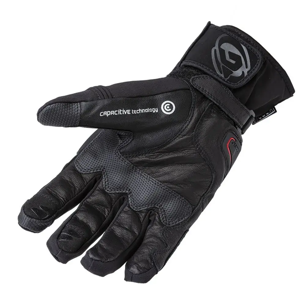 Мягкие протекторы из ЭВА на пальцах. Цифровая нашивка из микрофибры и TPR-протектор на ладони. Нескользящий силикон на пальцах и ладони для дополнительного сцепления. Стеклоочиститель козырька для вытирания дождя. Ремешок на запястье, чтобы перчатки не соскользнули при падении, и застежка на липучке для плотного прилегания к рукаву куртки. Нашивки из токопроводящего материала, вшитые в большой и указательный пальцы, позволяют владельцу пользоваться устройствами с сенсорным экраном. Перемычка для 3-4-го пальца предотвращает перекручивание пальцев и потенциальный разрыв шва в случае удара. Светоотражающий. CE 13594: омологация 2015. Цвета: черный / темно-серый, черный / светло-серый, черный / красный и черный / флуоресцентный. Размеры: от XS до XXL. Верхняя часть наколенника выполнена в черном цвете и может быть приобретена отдельно в цветах fluor, red и titanium grey.