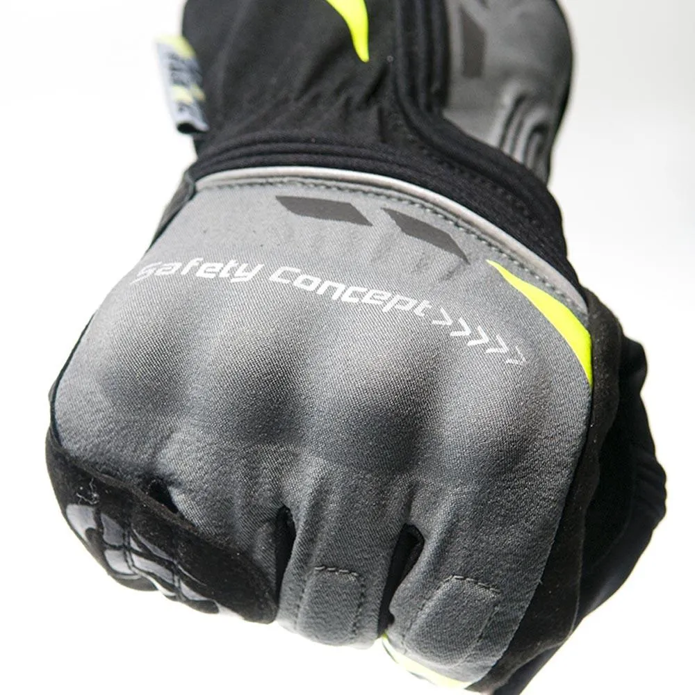 Ремешок на запястье, предотвращающий соскальзывание перчаток при падении, и застежки на липучке для плотного прилегания к рукаву куртки.