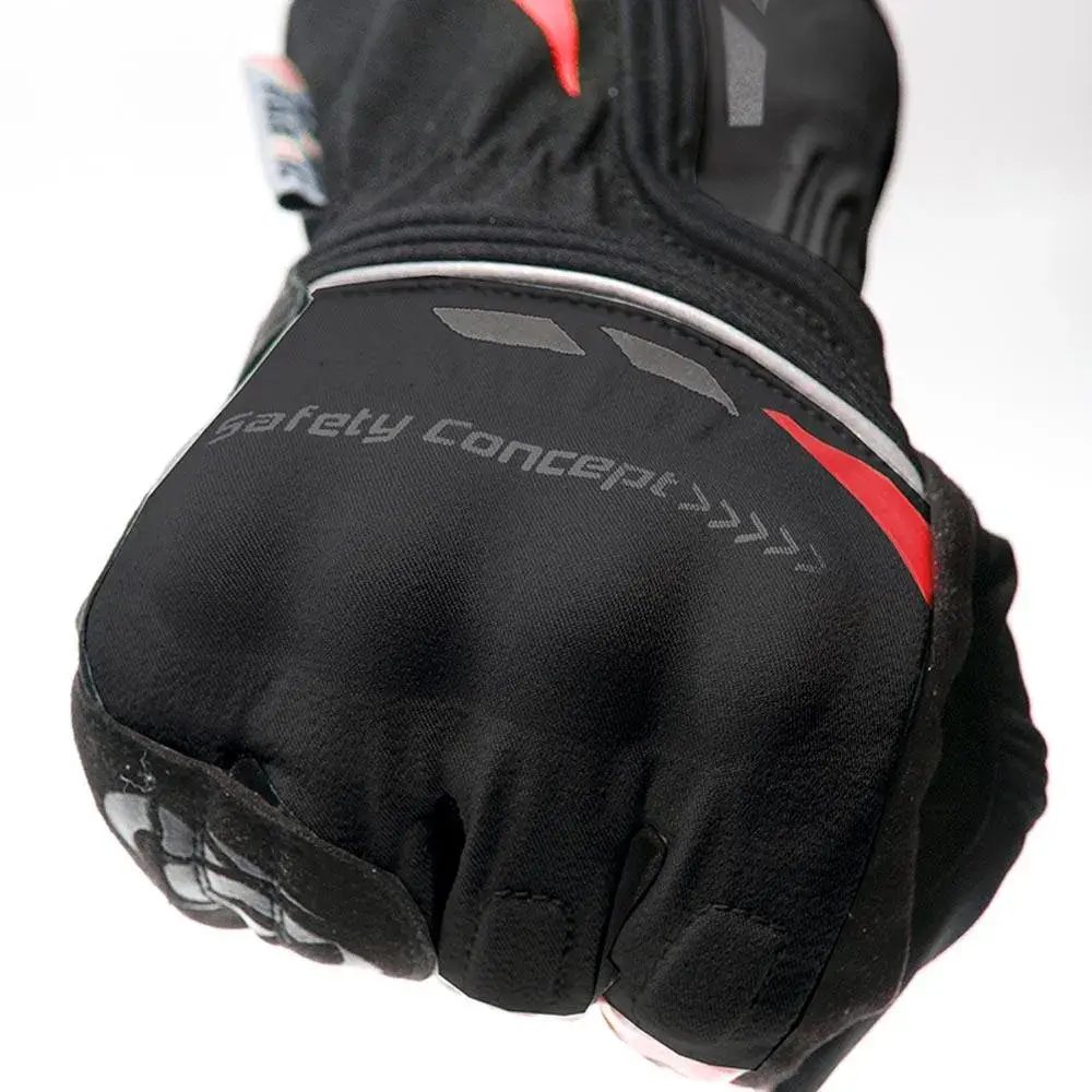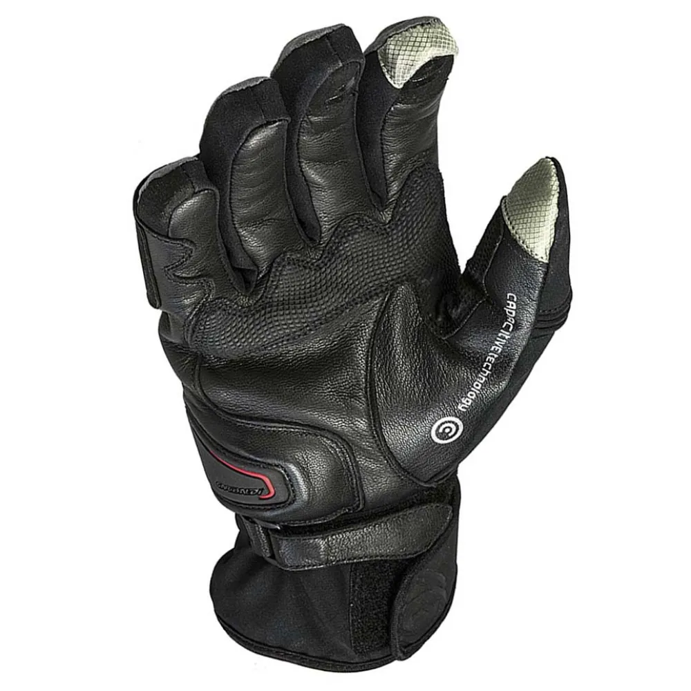Нашивки из токопроводящего материала, вшитые в большой и указательный пальцы, позволяют владельцу пользоваться устройствами с сенсорным экраном. Перемычка для 3-4-го пальца предотвращает перекручивание пальцев и потенциальный разрыв шва в случае удара.