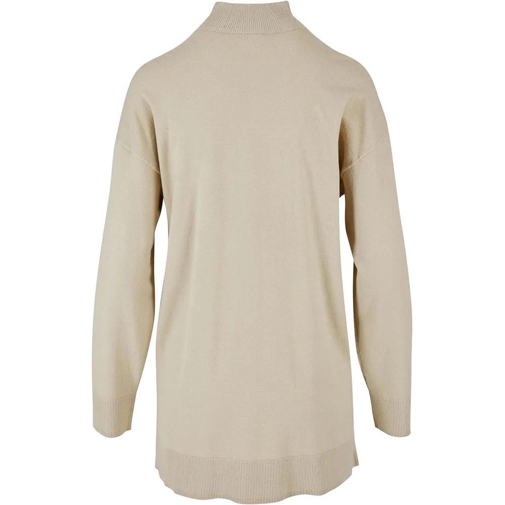 Женский свитер с высоким воротом имеет струящийся, приятный силуэт. Свободный крой и спущенные плечи. Боковые разрезы и широкие манжеты на рукавах и подоле придают ему изысканность. Этот свитер изготовлен из вискозных волокон Lenzing Ecovero.