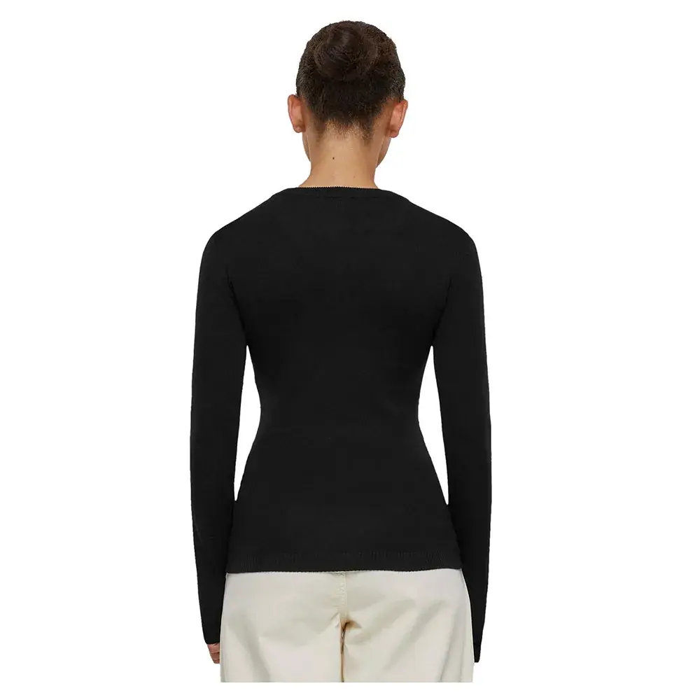 Женский свитер с V-образным вырезом — простая базовая модель на каждый день. Тонкая вязка обеспечивает сдержанный вид и уютный вид, а приталенный крой изящно подчеркивает фигуру. Свитер изготовлен из смеси вискозы и нейлона, что делает его особенно гладким и комфортным. V-образный вырез придает свитеру классический вид и открывает широкие возможности для комбинирования.
