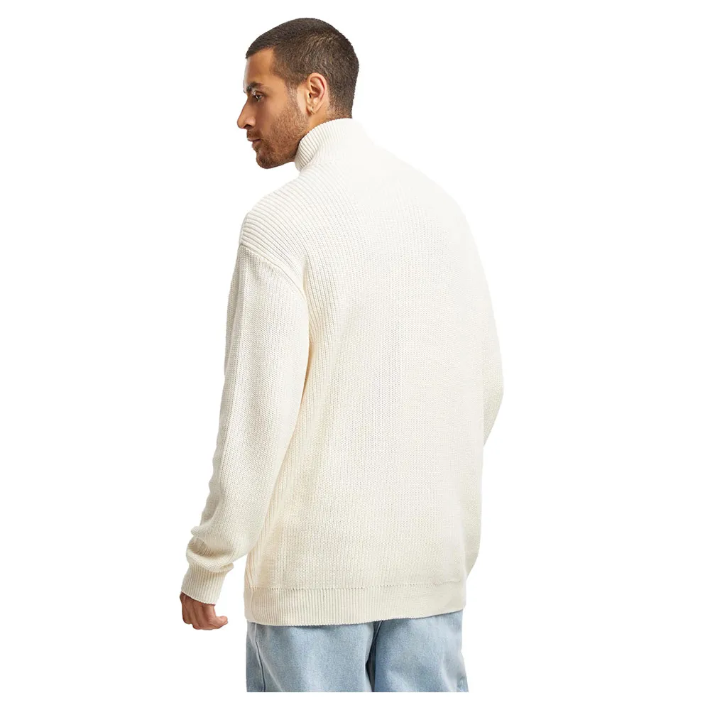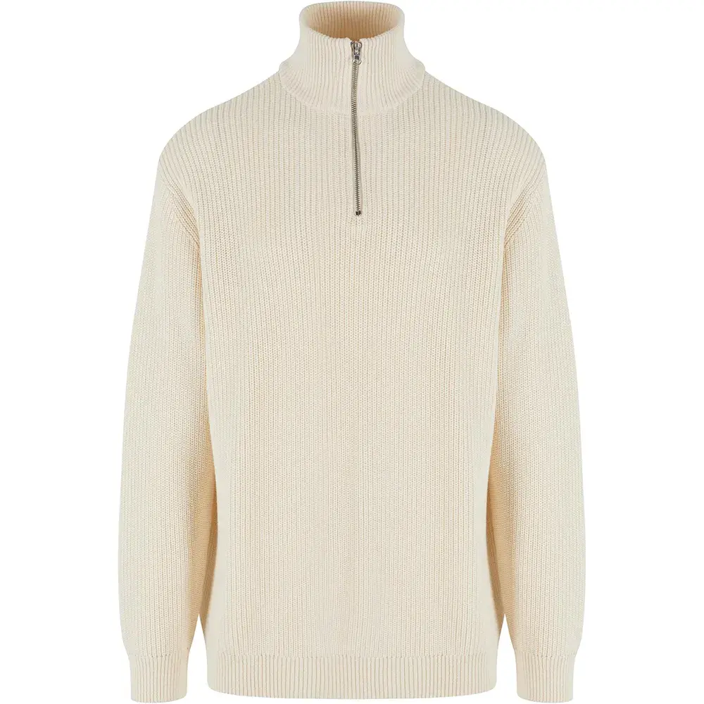 Базовый свитер в рубчик с застежкой-молнией до середины.