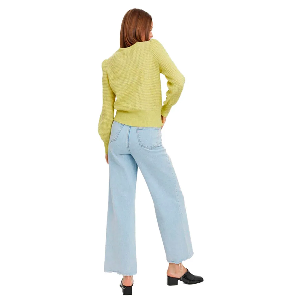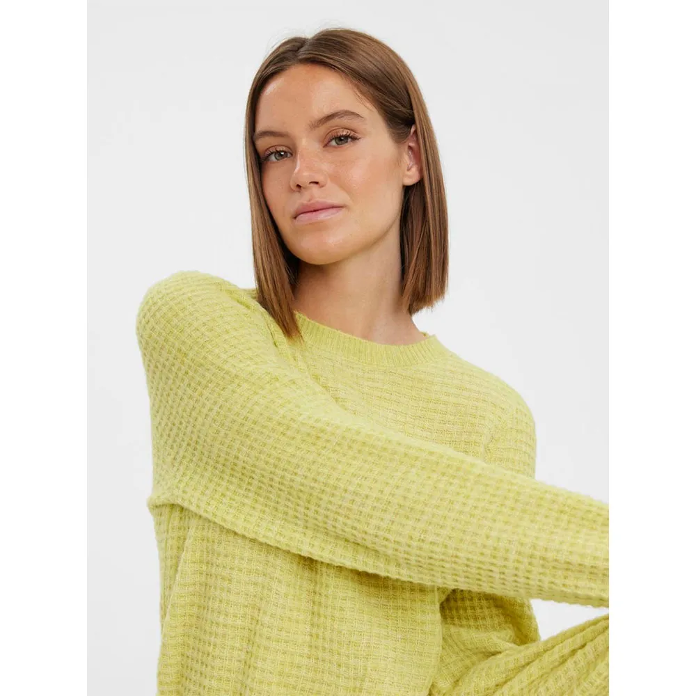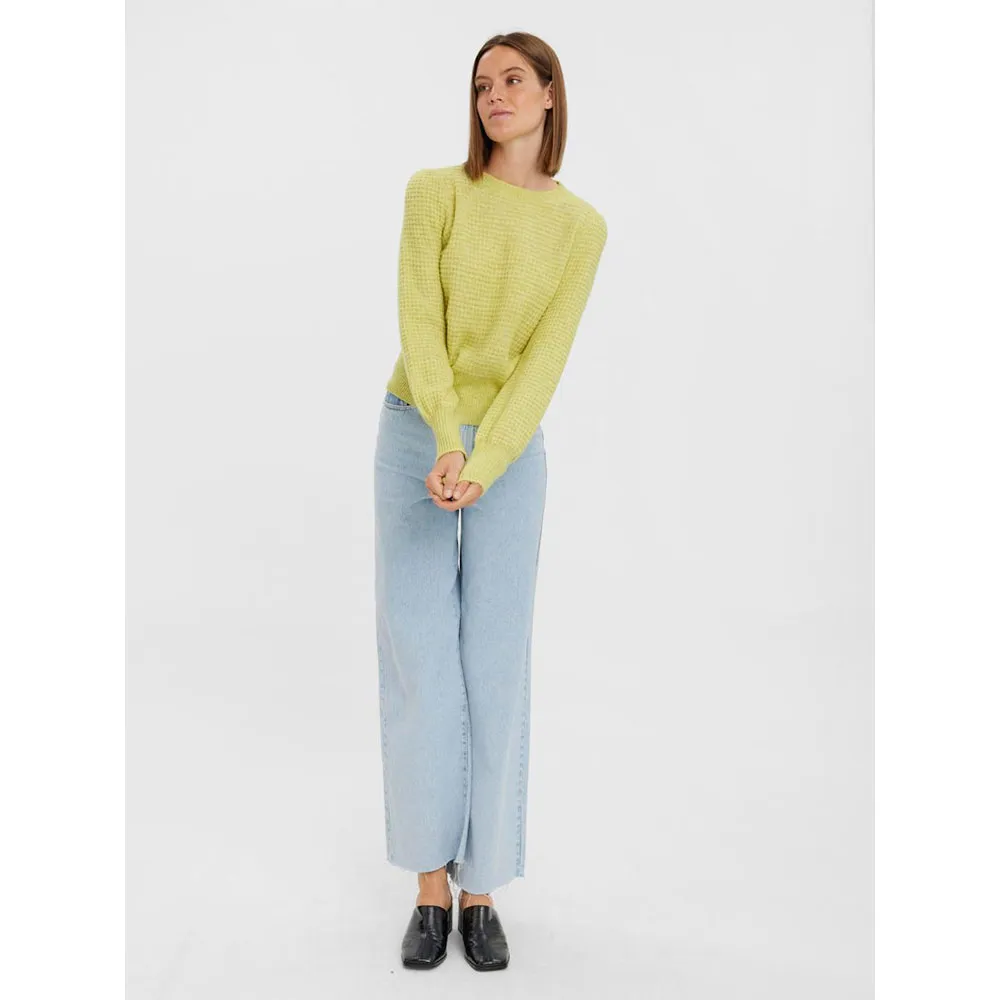 Структурированный трикотажный пуловер с рукавами-фонариками, О-образным вырезом и ребристой структурой на манжетах, вырезе и нижнем крае.