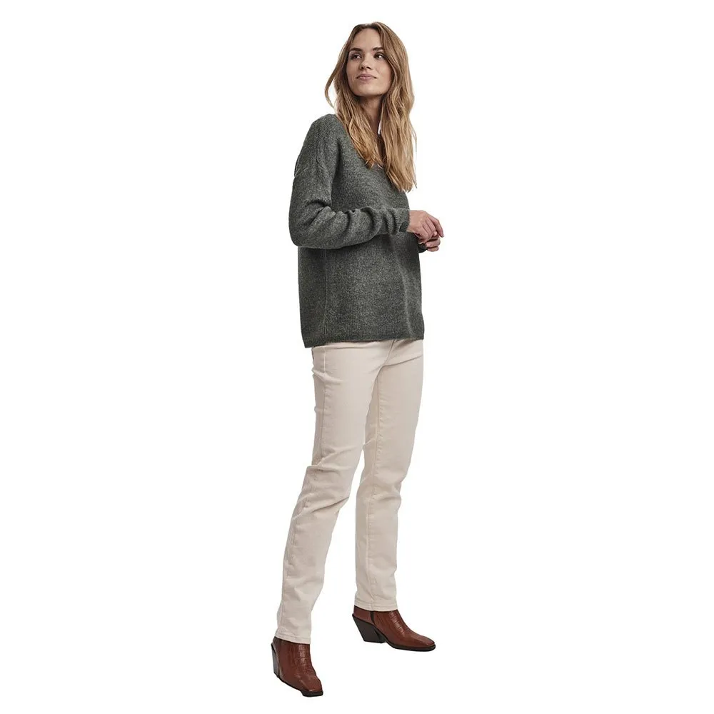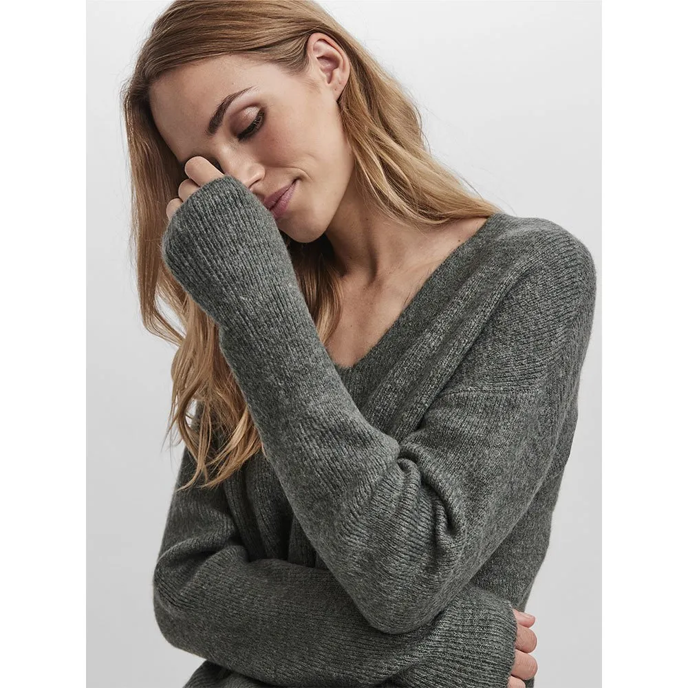 Вязаный свитер с V-образным вырезом из очень мягкого и эластичного материала. Носите свитер с узкими джинсами и ботинками для повседневной носки.