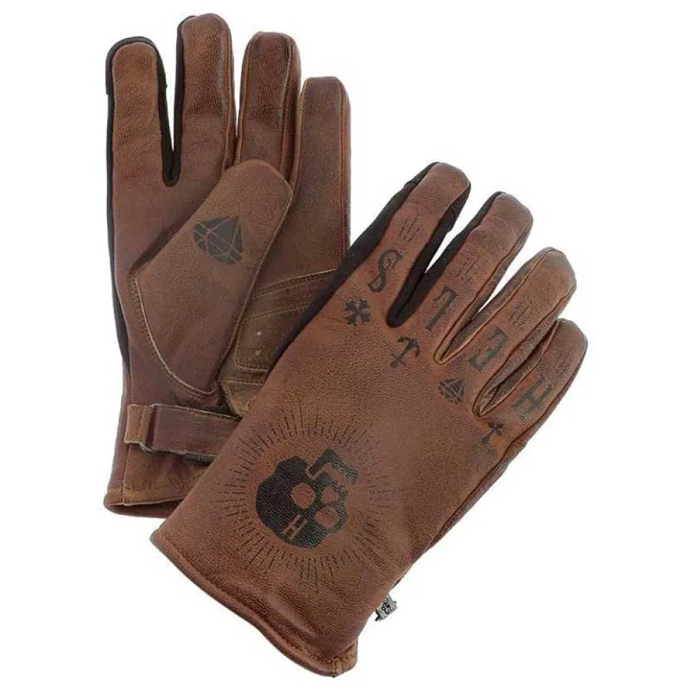 Кожаные перчатки HELSTONS Kustom Skull коричневого цвета - стильный вариант защиты для гонщиков, которые ищут уникальные детали своего снаряжения. Эти перчатки имеют характерный рисунок в виде черепа на тыльной стороне ладони, придающий вашему образу смелый и бунтарский оттенок.