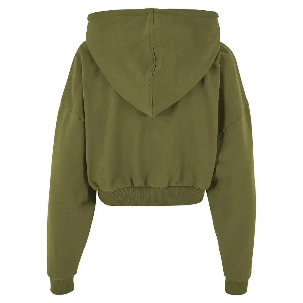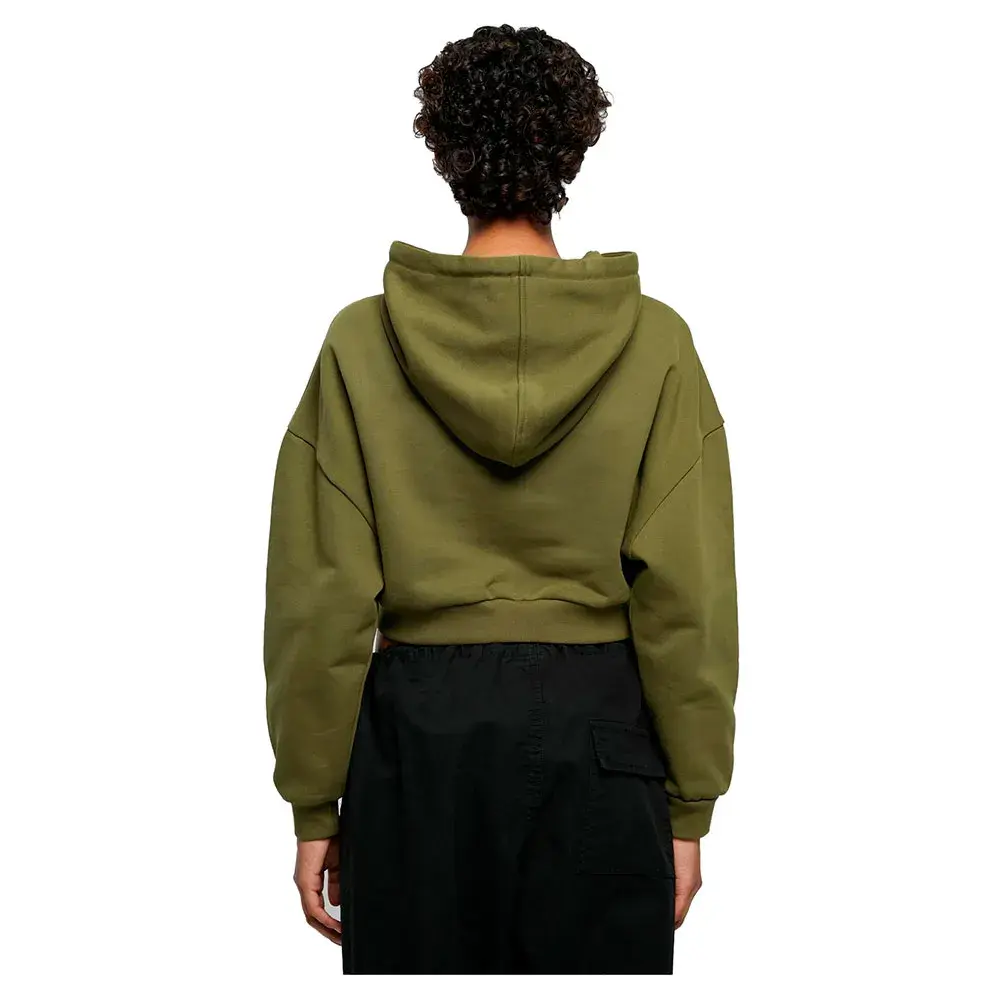 Женская толстовка с капюшоном укороченного кроя выполнена из особо плотного хлопкового махрового трикотажа. Стильный дизайн дополняет большой капюшон на шнурке и свободный крой с широкими спущенными плечами. Широкие ребристые манжеты на рукавах и подоле обеспечивают дополнительный комфорт.