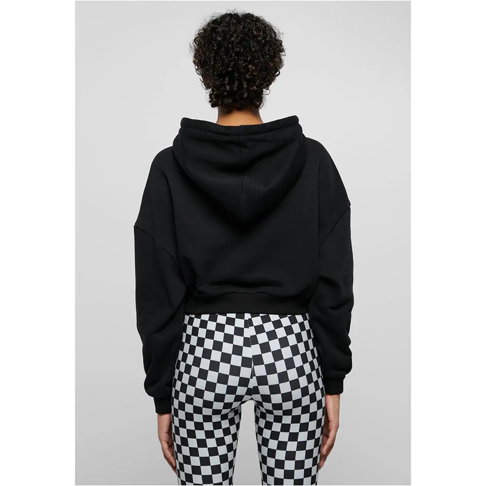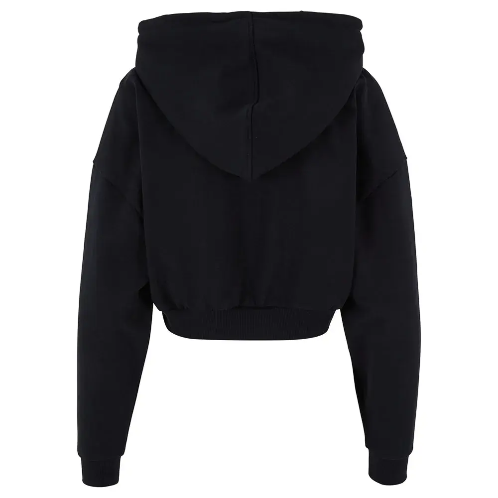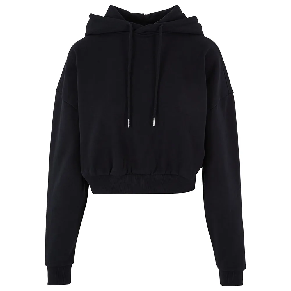 Женская толстовка с капюшоном укороченного кроя выполнена из особо плотного хлопкового махрового трикотажа. Стильный дизайн дополняет большой капюшон на шнурке и свободный крой с широкими спущенными плечами. Широкие ребристые манжеты на рукавах и подоле обеспечивают дополнительный комфорт.