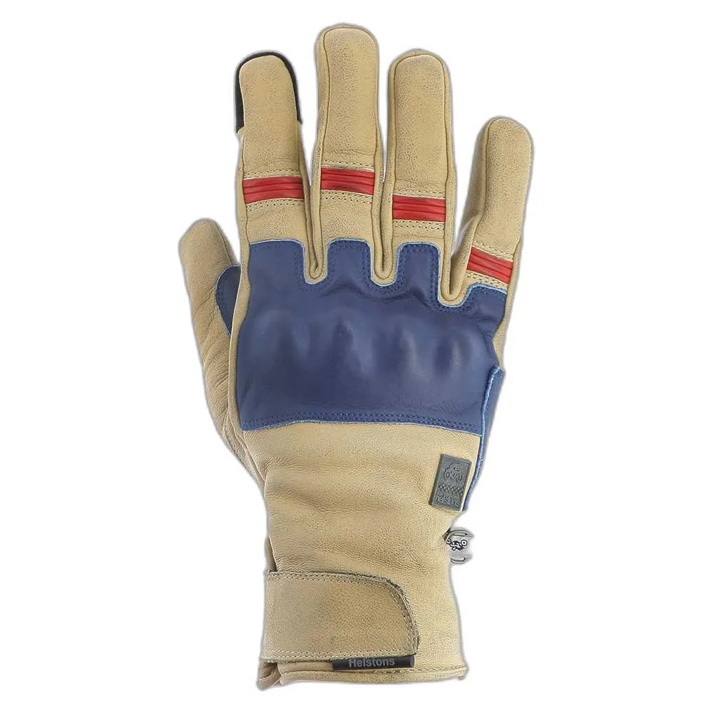 Кожаные перчатки HELSTONS Wislay - стильный и функциональный аксессуар для мотоциклистов. Изготовленные из высококачественной кожи, эти перчатки с бежевыми, синими и красными вставками создают смелый и привлекательный образ. Перчатки оснащены встроенной защитой костяшек пальцев и ладоней для обеспечения максимальной безопасности во время езды. Кожаные перчатки HELSTONS Wislay с удобной и надежной посадкой - идеальный выбор для райдеров, которым нужны стиль и защита на дороге.