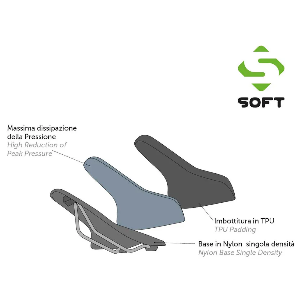 Весь корпус из нейлона оснащен центральным отверстием, предназначенным для минимизации давления в области промежности, повышая комфорт при вращении педалей как для мужчин, так и для женщин.