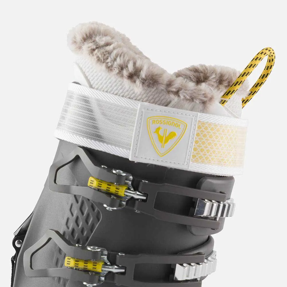 - Благодаря укороченной верхней манжете и открытой форме тюльпана на задней части внутреннего ботинка женская манжета соответствует естественной форме икры женщины, обеспечивая улучшенный баланс, комфорт и производительность.