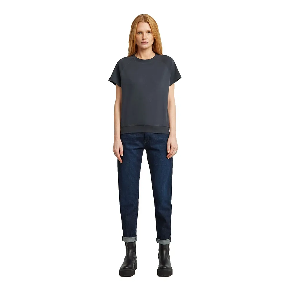 Футболка реглан имеет классический крой с короткими рукавами и круглым вырезом.