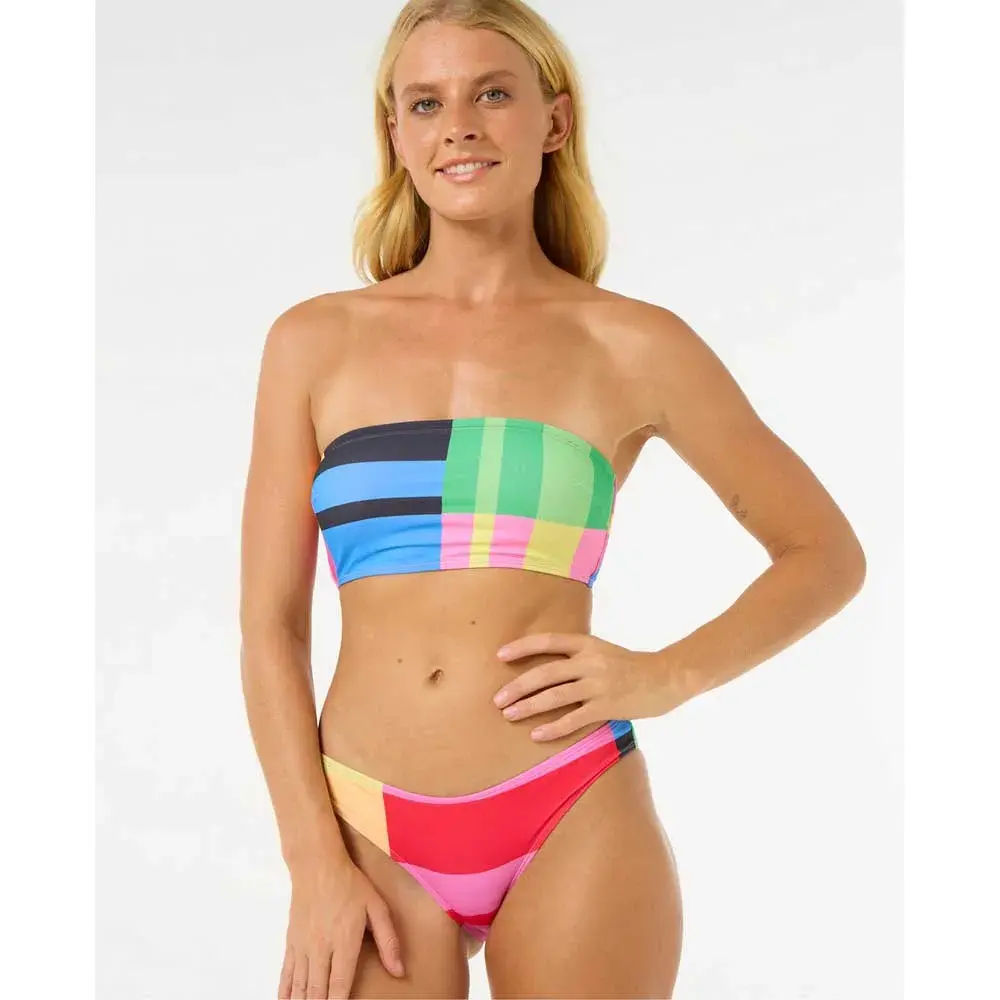 85 % полиэстер и 15 % эластан, микрофибра Lycra Extra Life, хорошее покрытие, низкая посадка, напечатанный рисунок, переработанная ткань, полностью на подкладке, металлическая отделка с логотипом.